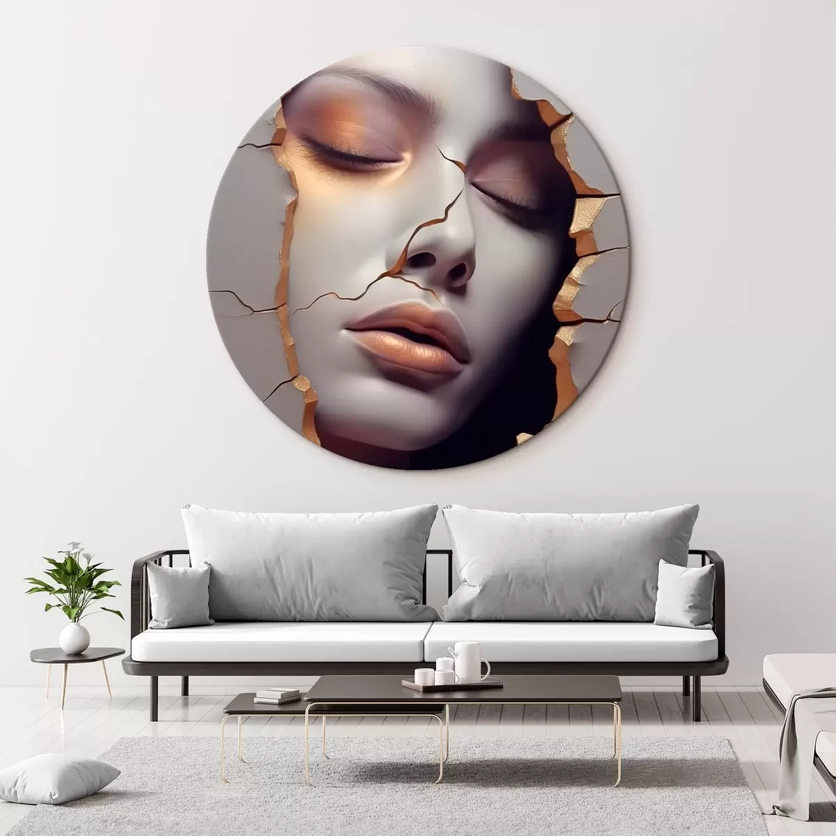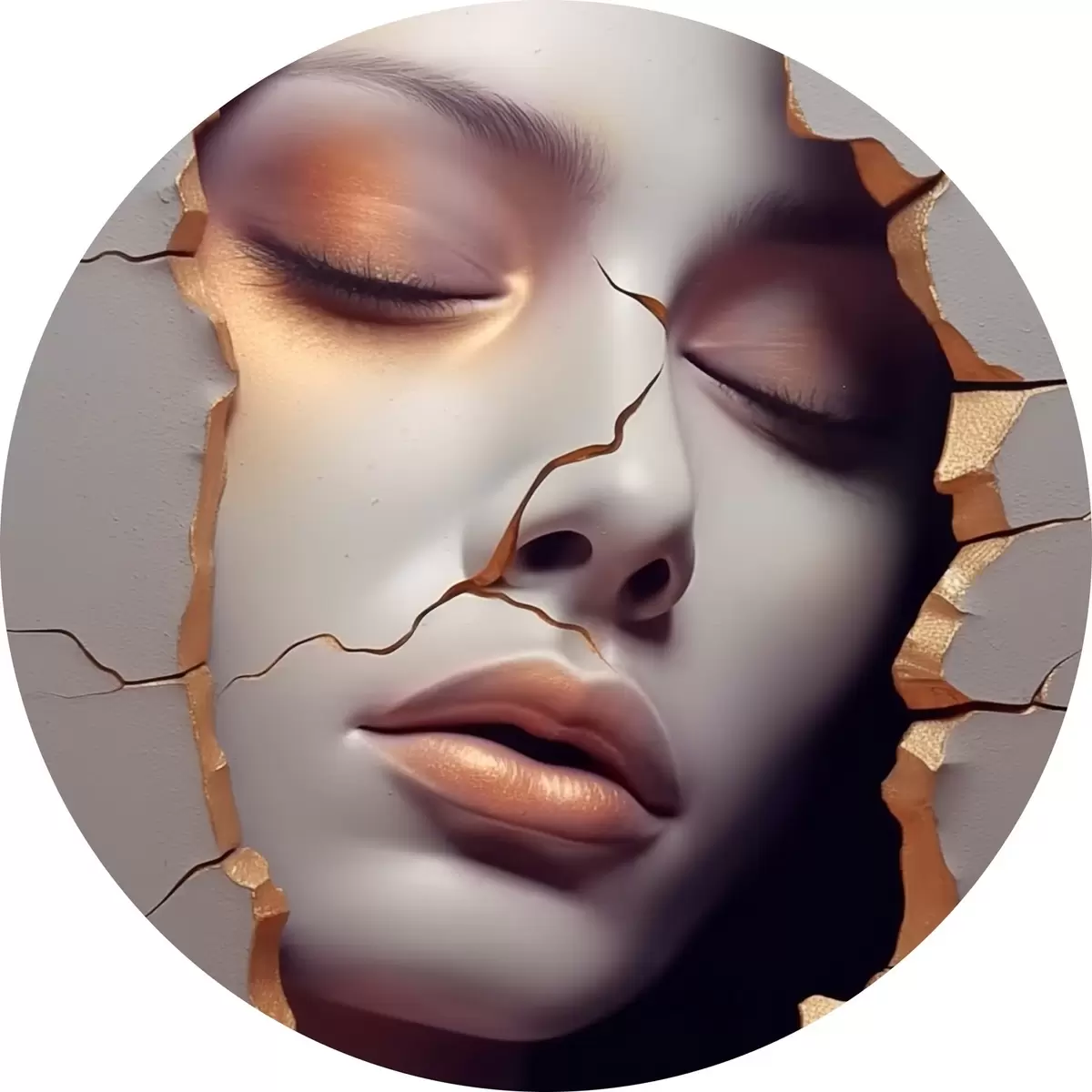 Runde Gemälde Gesicht in Rissen r45461
