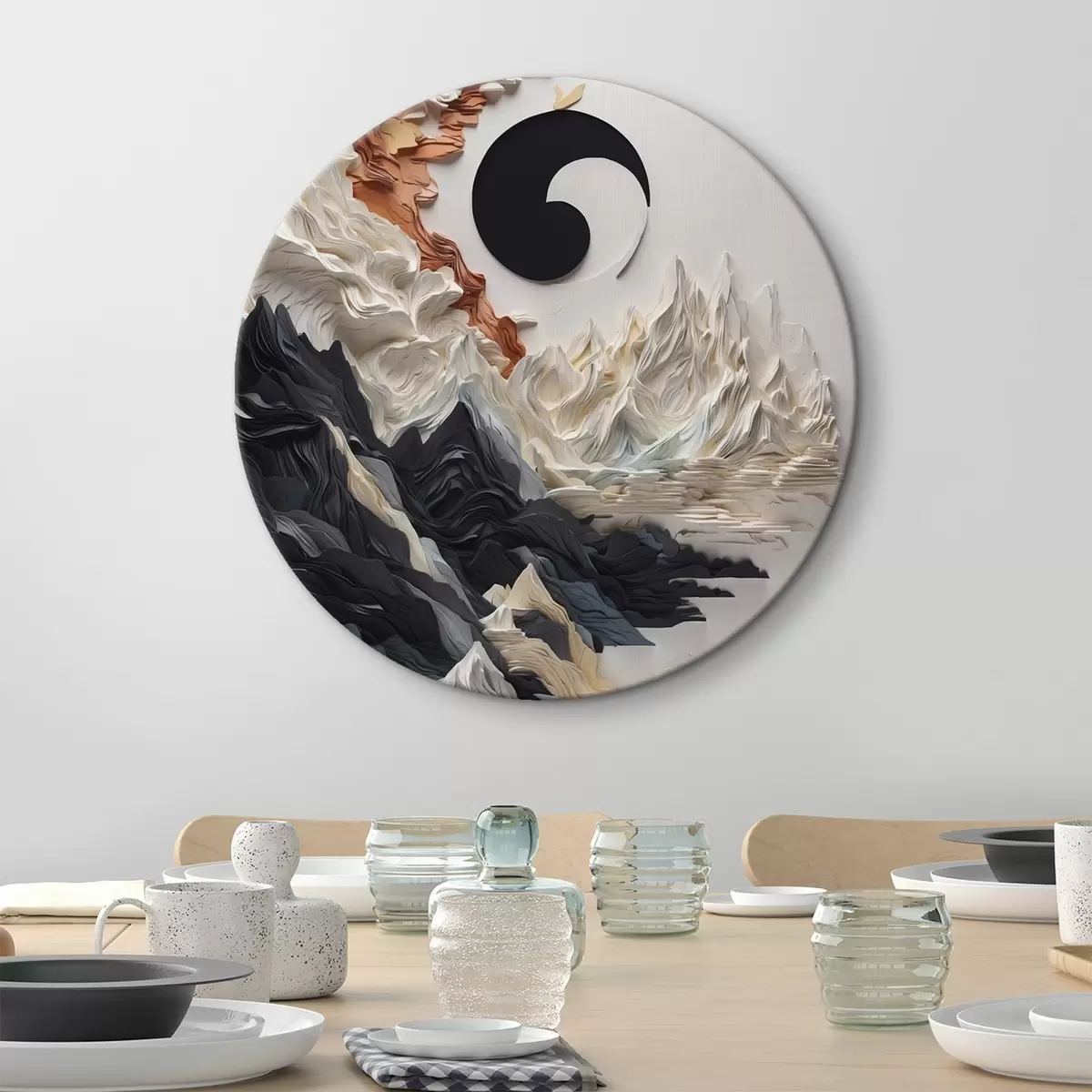 Runde Gemälde Abstrakte Landschaft mit Bergen in einem Papier-Stil r45482
