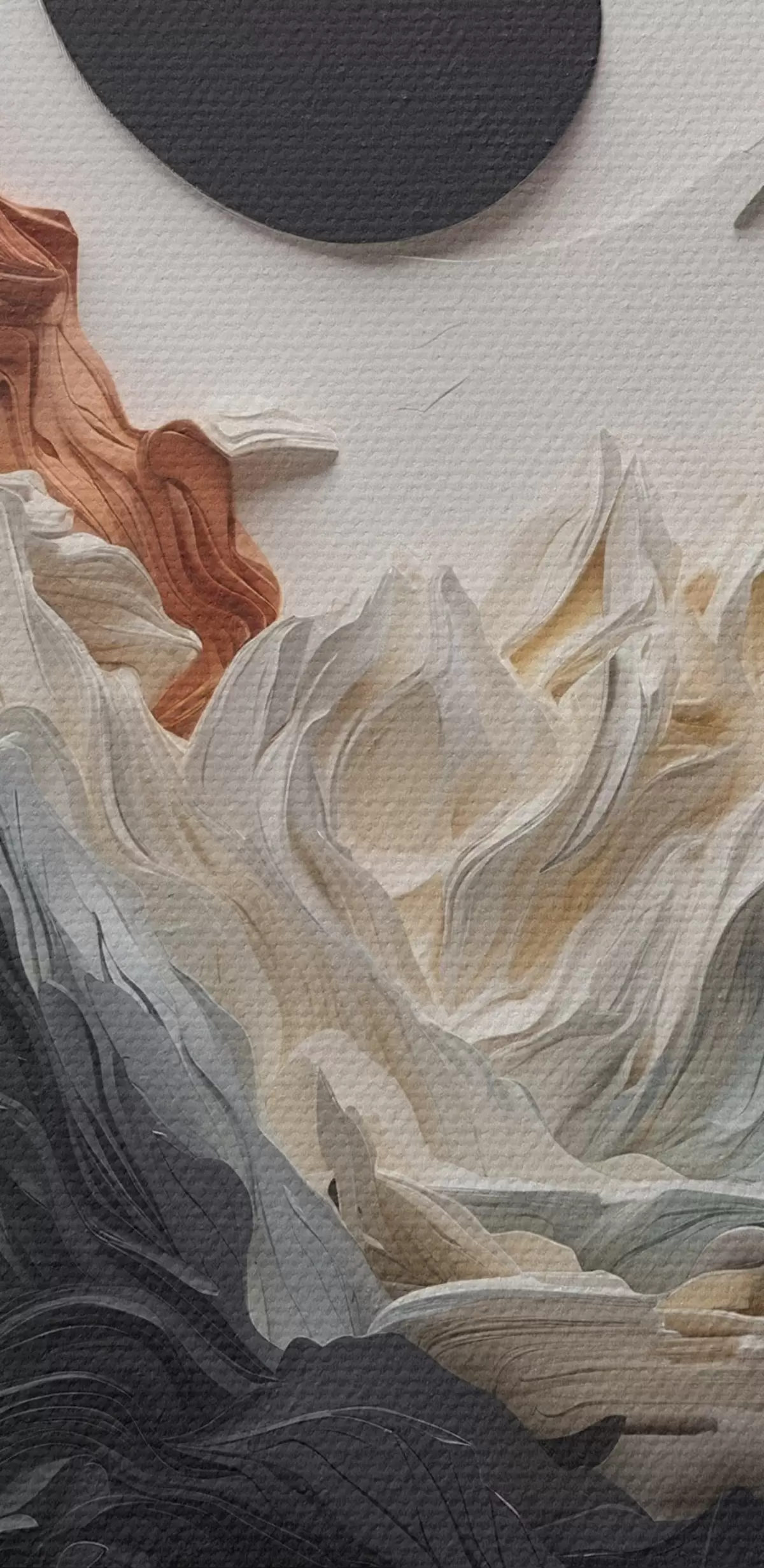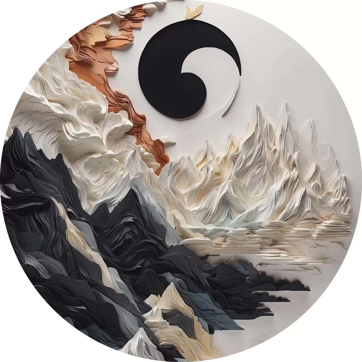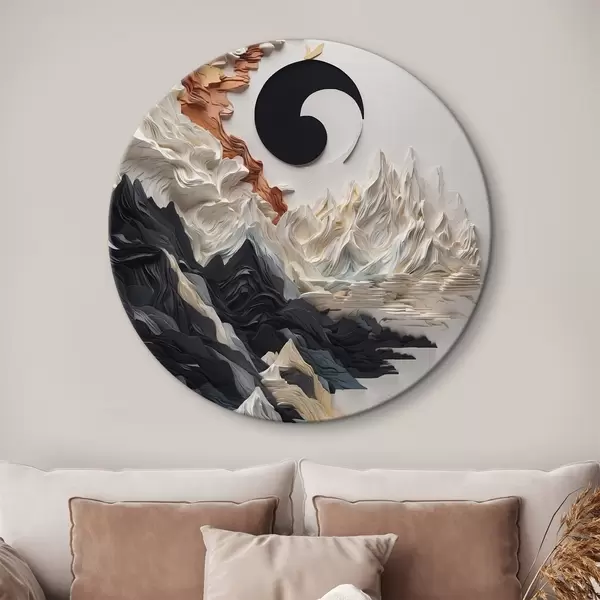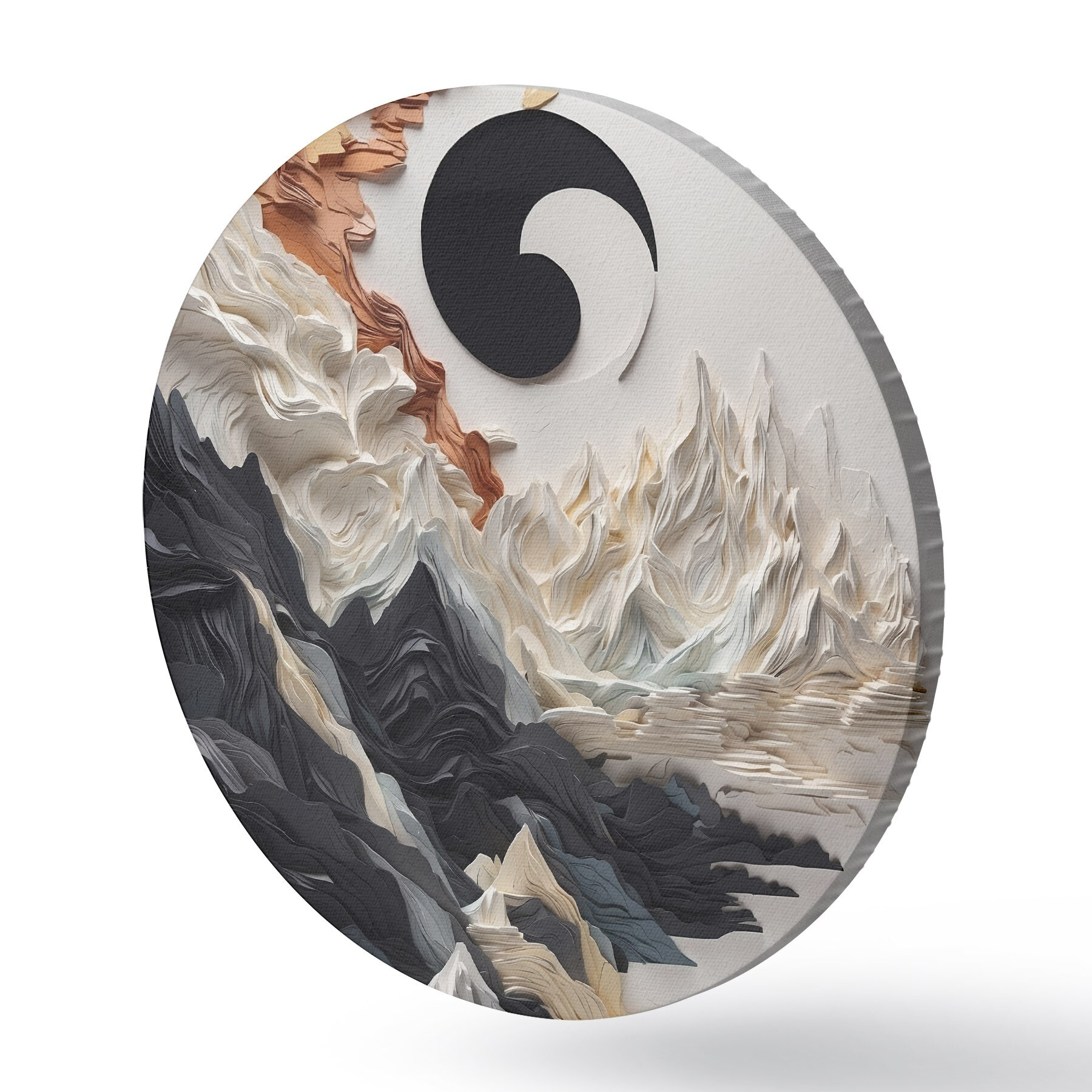 Runde Gemälde Abstrakte Landschaft mit Bergen in einem Papier-Stil r45482