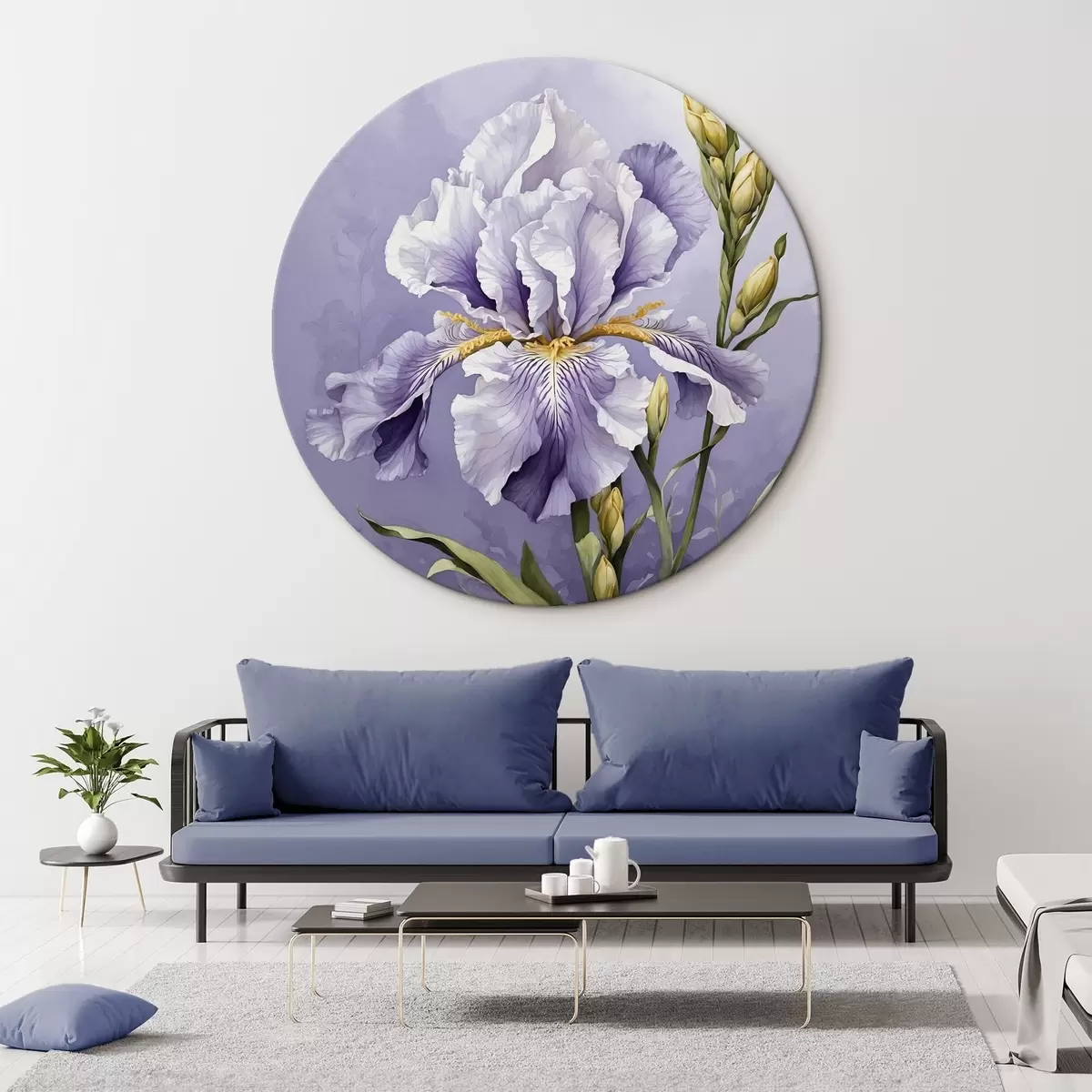 Runde Gemälde Blauer Vogel auf einem Zweig mit Blättern im Aquarellstil r45486