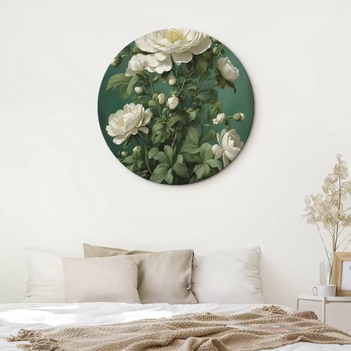 Runde Gemälde Große blaue Mohnblumen mit Knospen auf hellem Hintergrund r45491