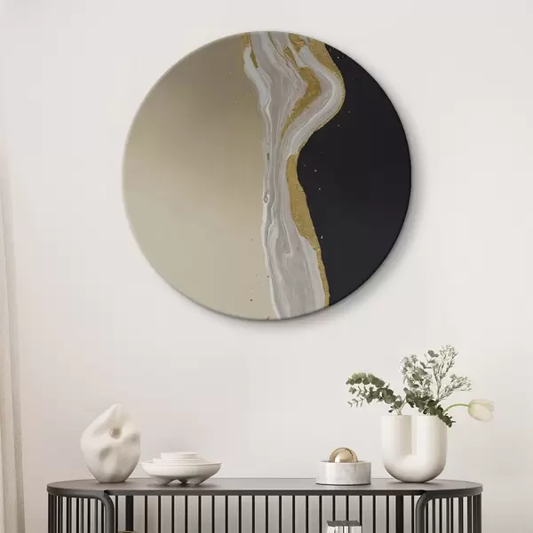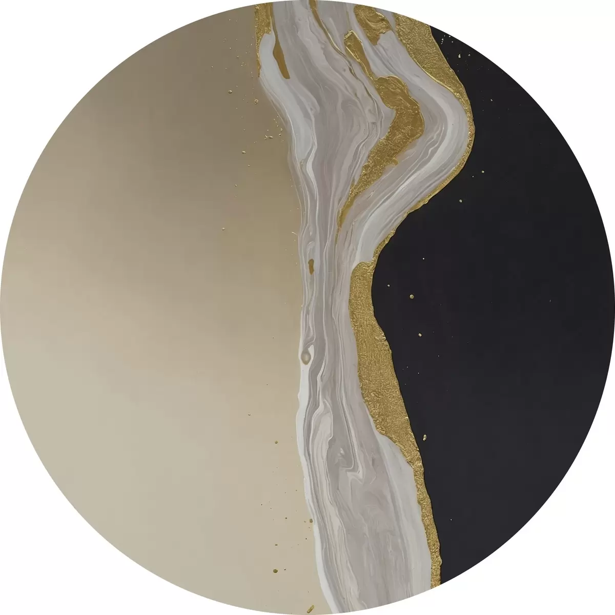 Runde Gemälde Cremefarbene Pfingstrosenblüten auf grünem Hintergrund r45494