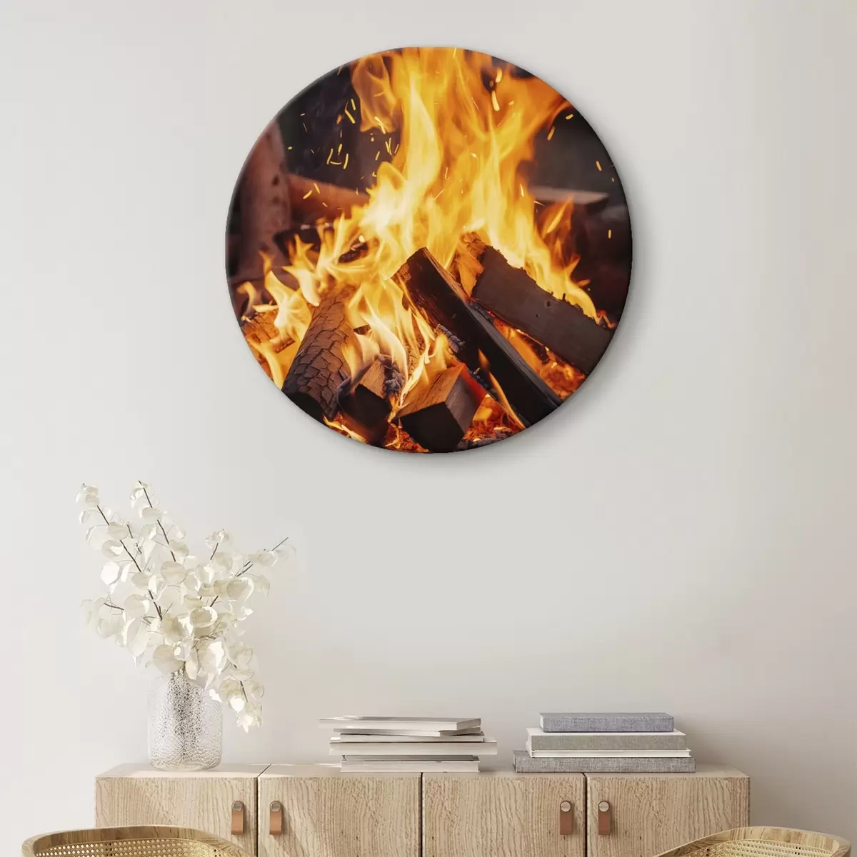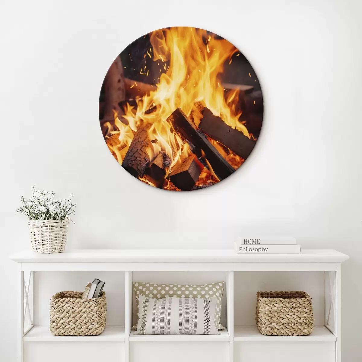 Runde Gemälde Flammendes Feuer in der Dunkelheit r45514