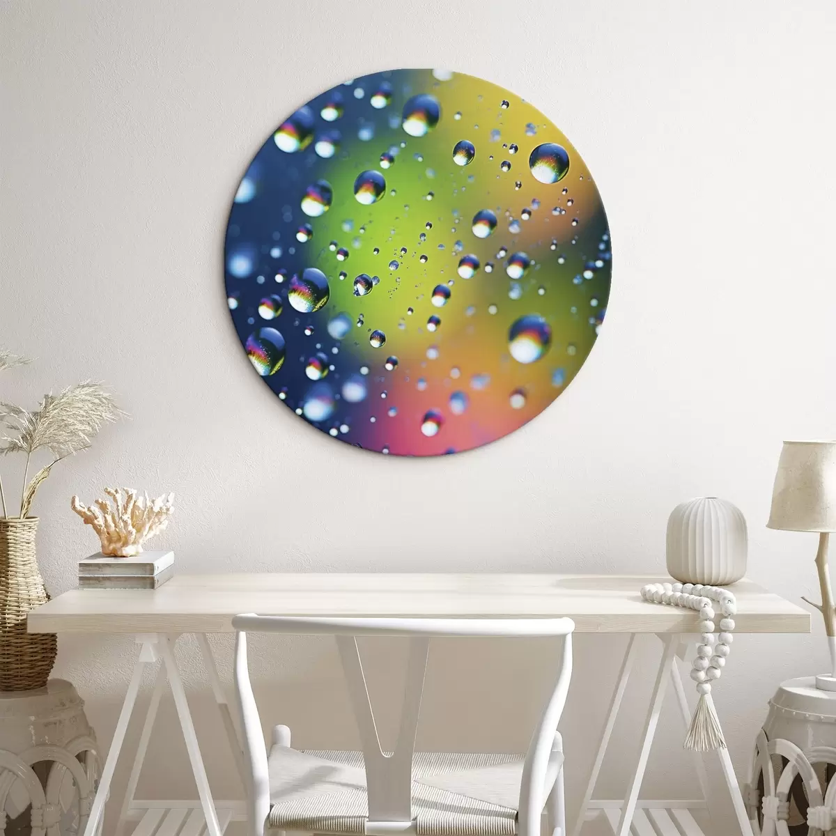 Runde Gemälde Farbige Reflexionen in Wassertröpfchen r45522