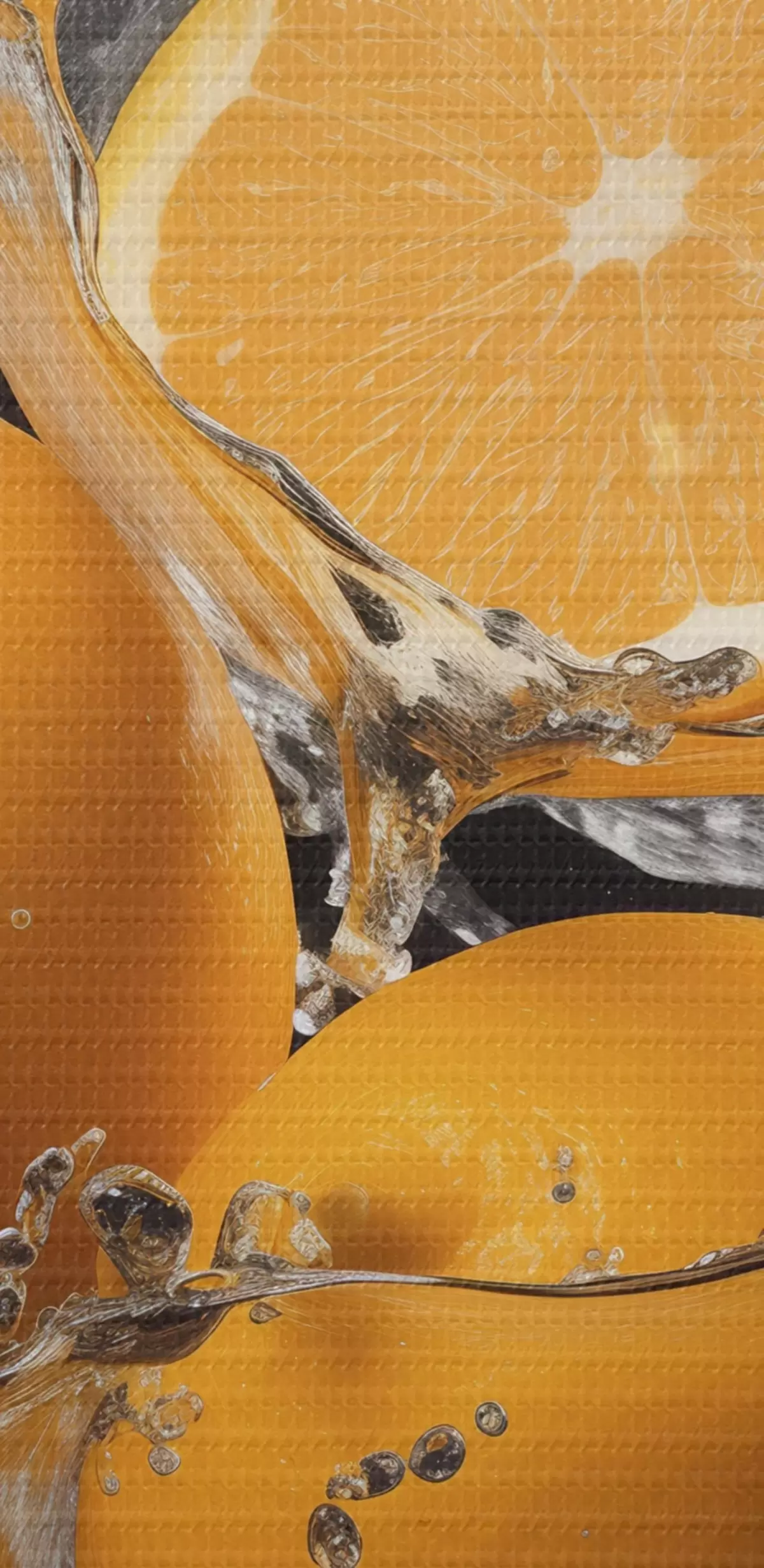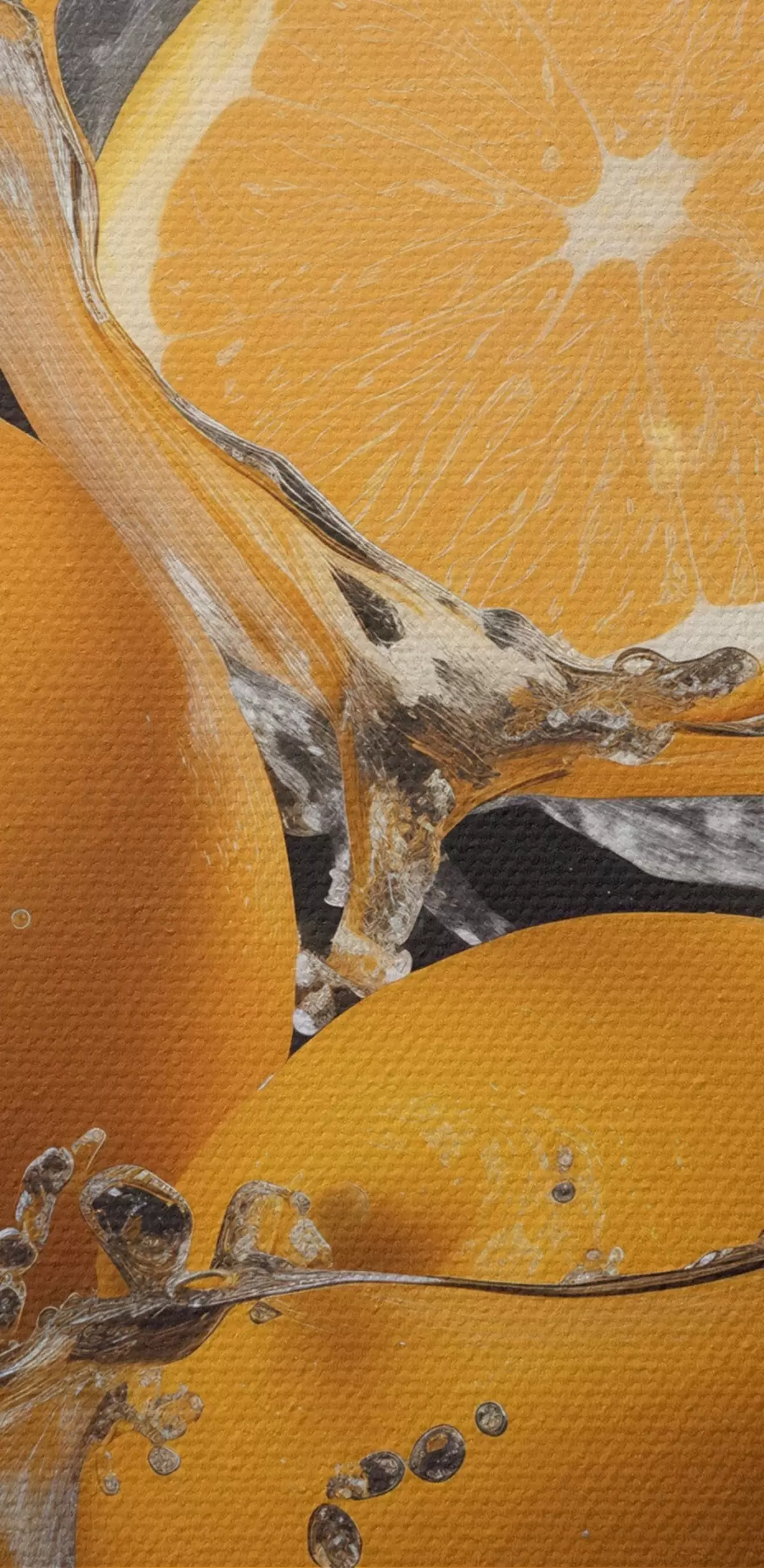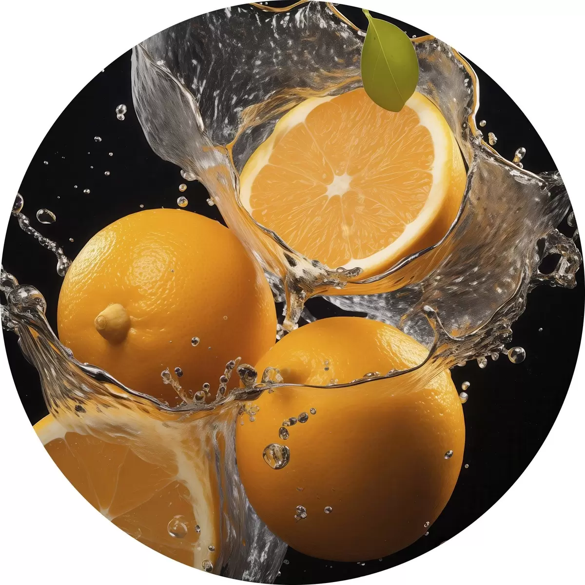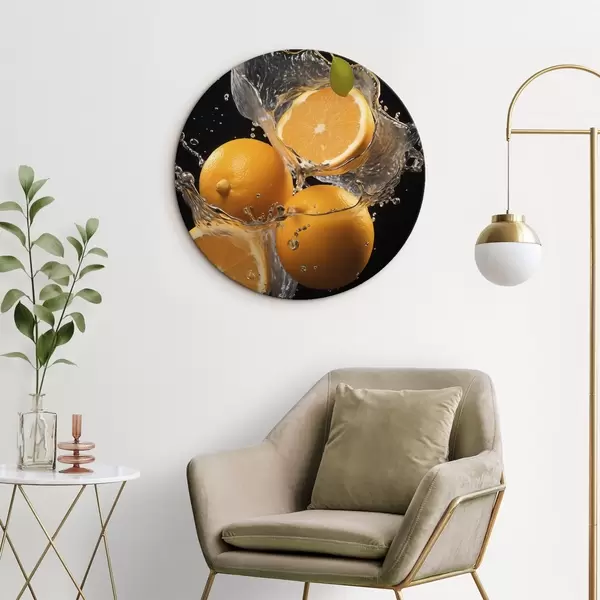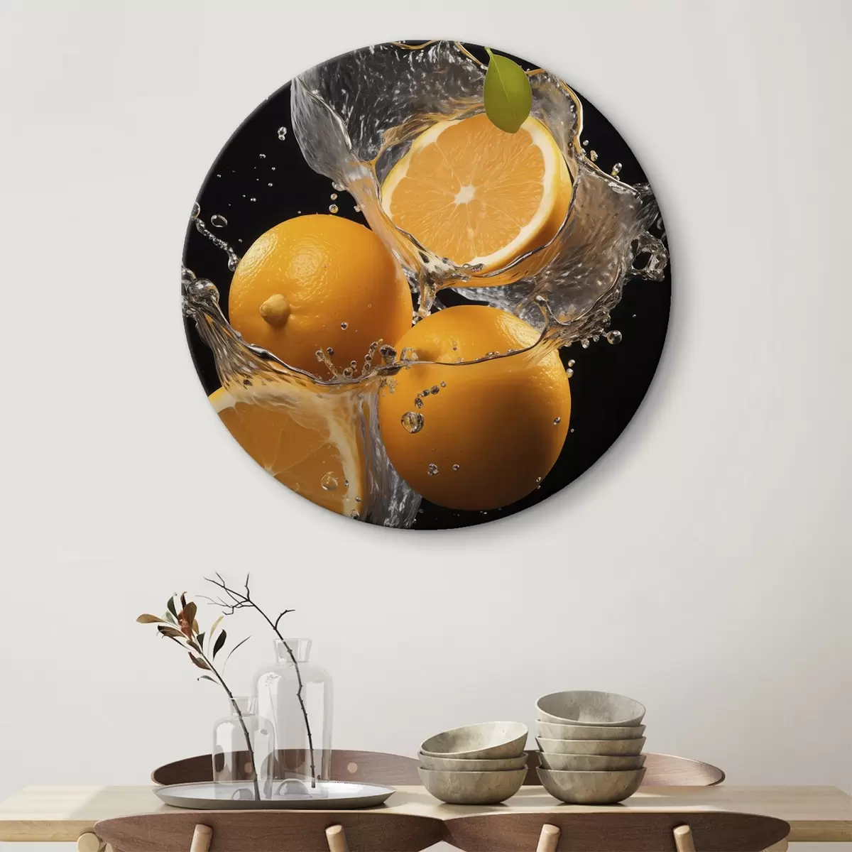 Runde Gemälde Saftige Orangen in Wasserspritzern r45526