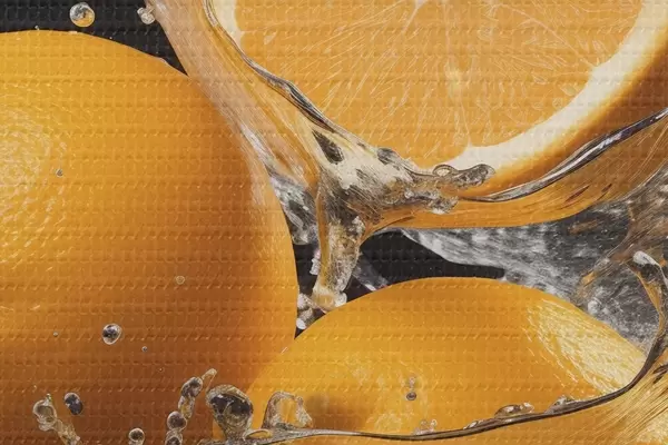 Runde Gemälde Saftige Orangen in Wasserspritzern r45526