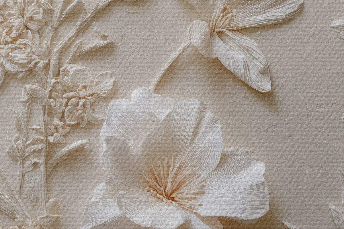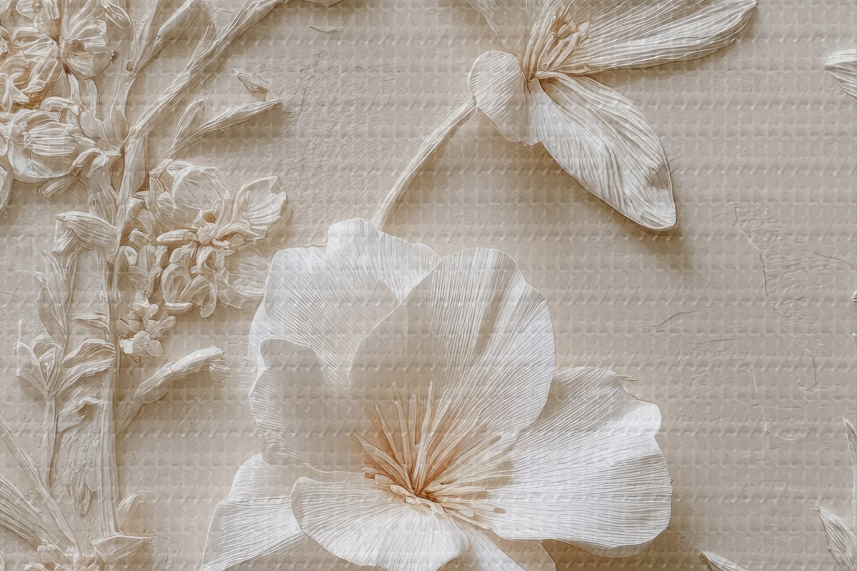 Bild Blumenmotiv: Basrelief mit Pflanzen auf hellem Hintergrund Nr r45536