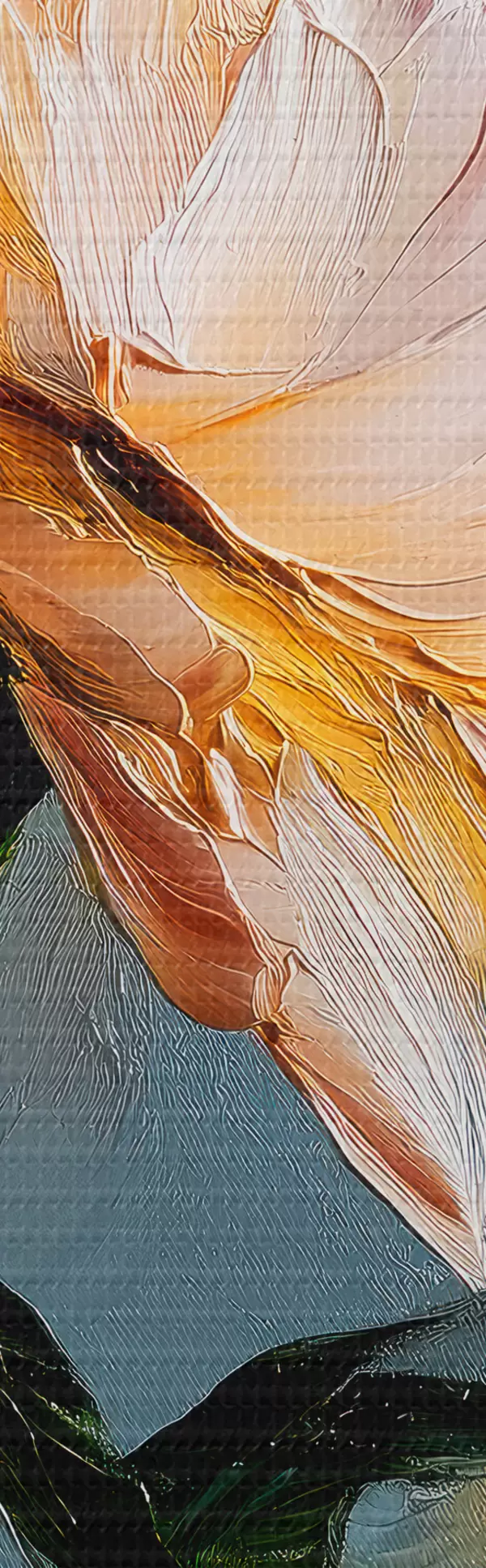 Drei Materialtypen stehen zur Verfügung: Economic Canvas - ein dichtes und haltbares Material für den Digitaldruck, identisch mit Malerleinwand, wasserfeste Oberfläche, realistische Wiedergabe von Details, mittelkörniges Material. Premium Canvas - die Textur ähnelt der einer Malerleinwand (verwobene kleine Fäden). Weiche, detaillierte Wiedergabe des Bildes auf einer matten Oberfläche. Eco-Premium - hochwertiges Gewebe aus 100% Baumwolle. Dank der natürlichen Baumwollfasern ist das Material langlebig und verschleißfest. Hervorragende Farbwiedergabe und Detailtreue.