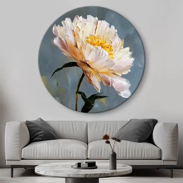 Runde Gemälde Abstrakte Blume: Komposition in Blau- und Grautönen r45542