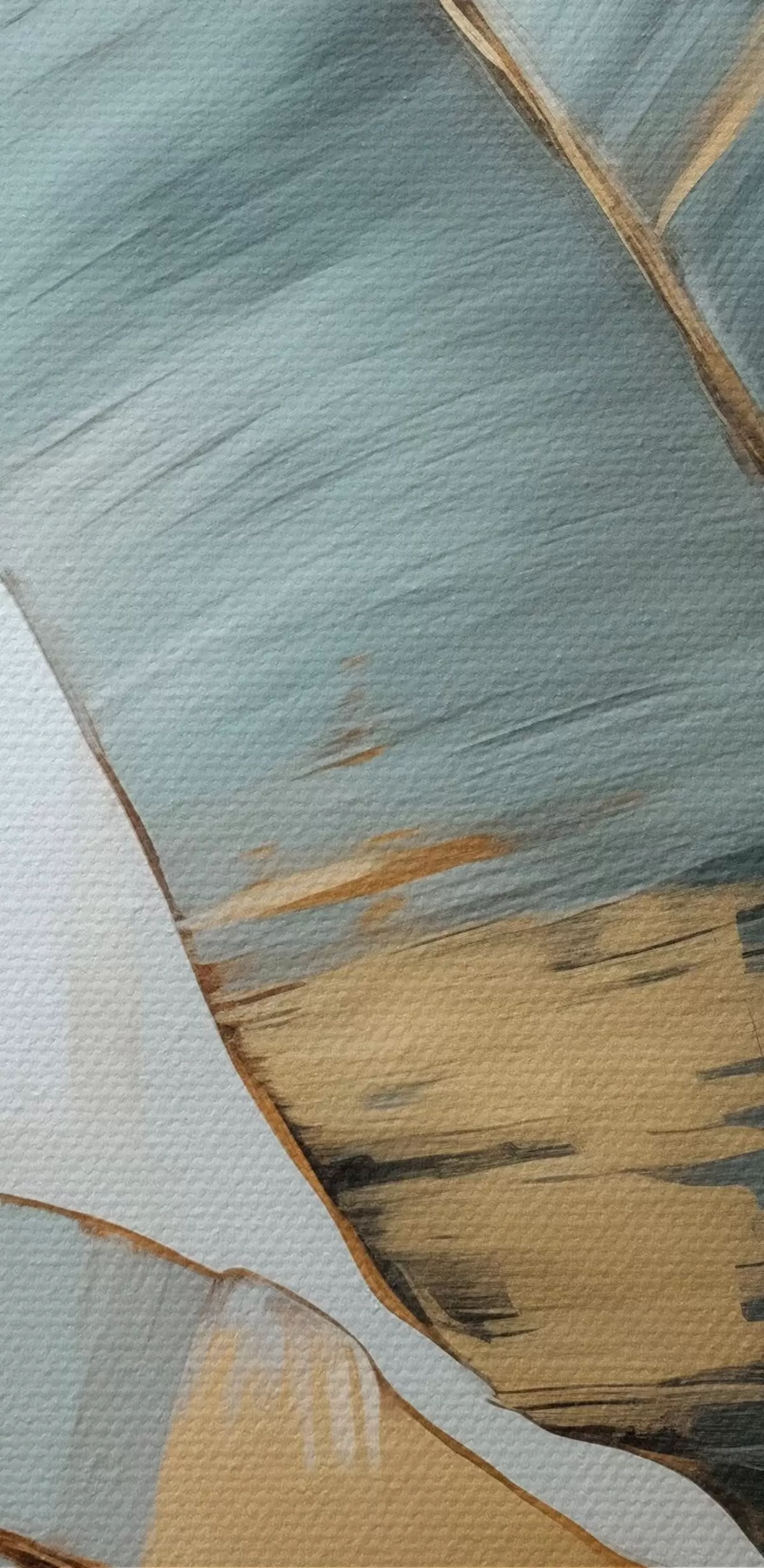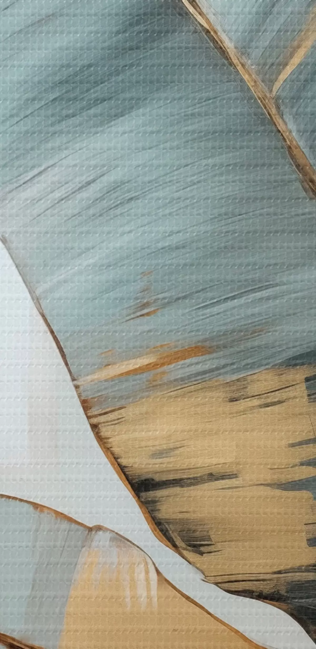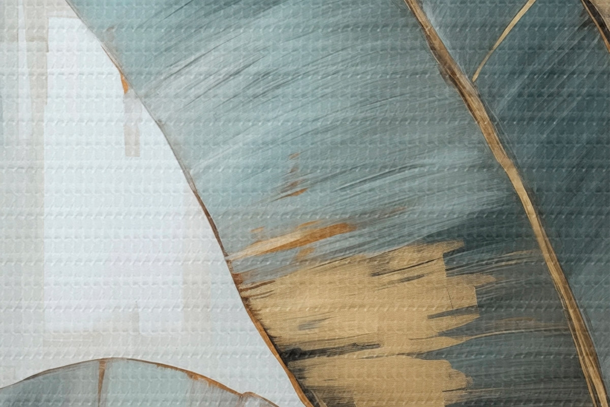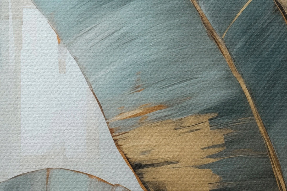 Bild Eine Reihe von gedämpften blauen, grauen und gelben Bananenblättern mit sichtbaren Pinselstrichen vor einem weißen abstrakten Hintergrund Nr r45551