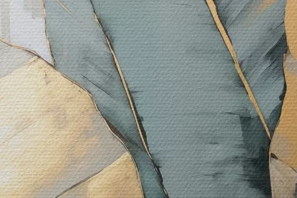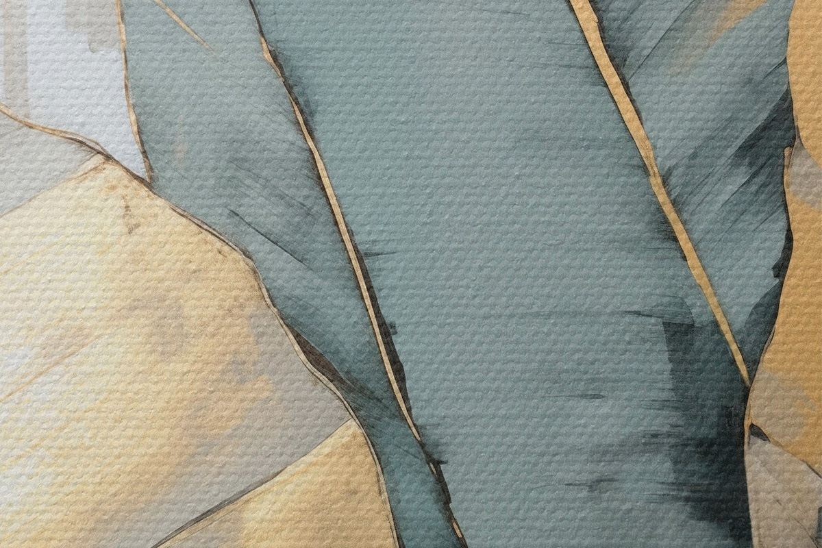 Bild Gedämpfte blaue, graue und gelbe Bananenblätter mit sichtbaren Pinselstrichen vor einem weißen abstrakten Hintergrund Nr r45552