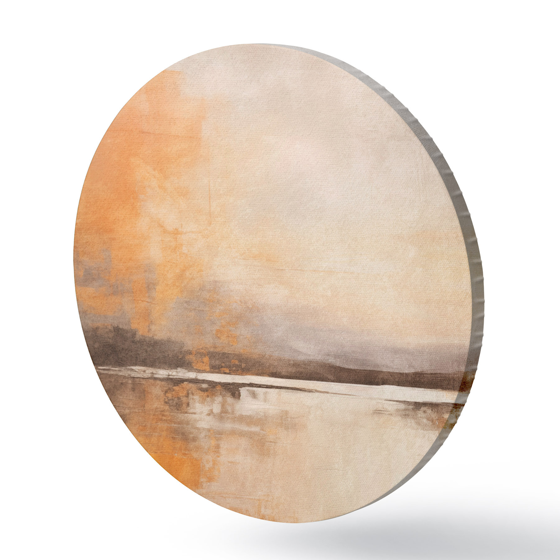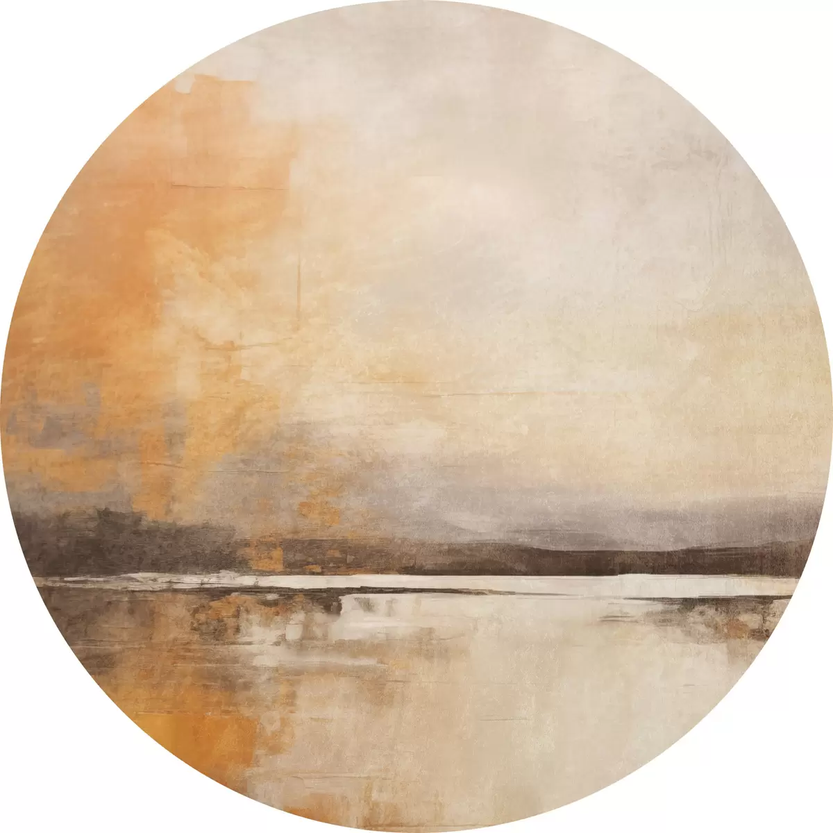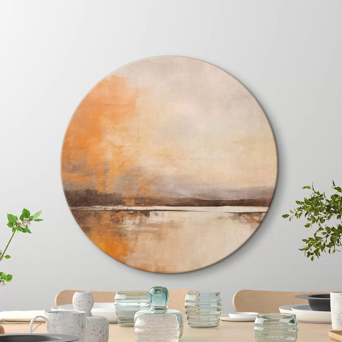 Runde Gemälde Eine abstrakte, strukturierte Landschaft in Orange-, Braun- und Beigetönen r45568