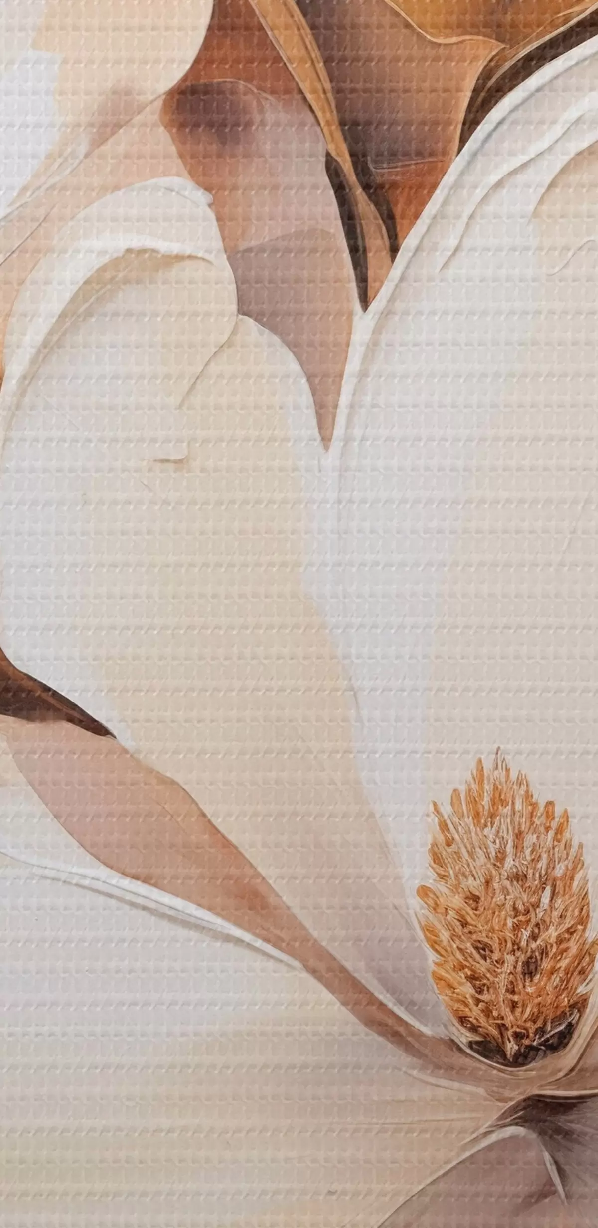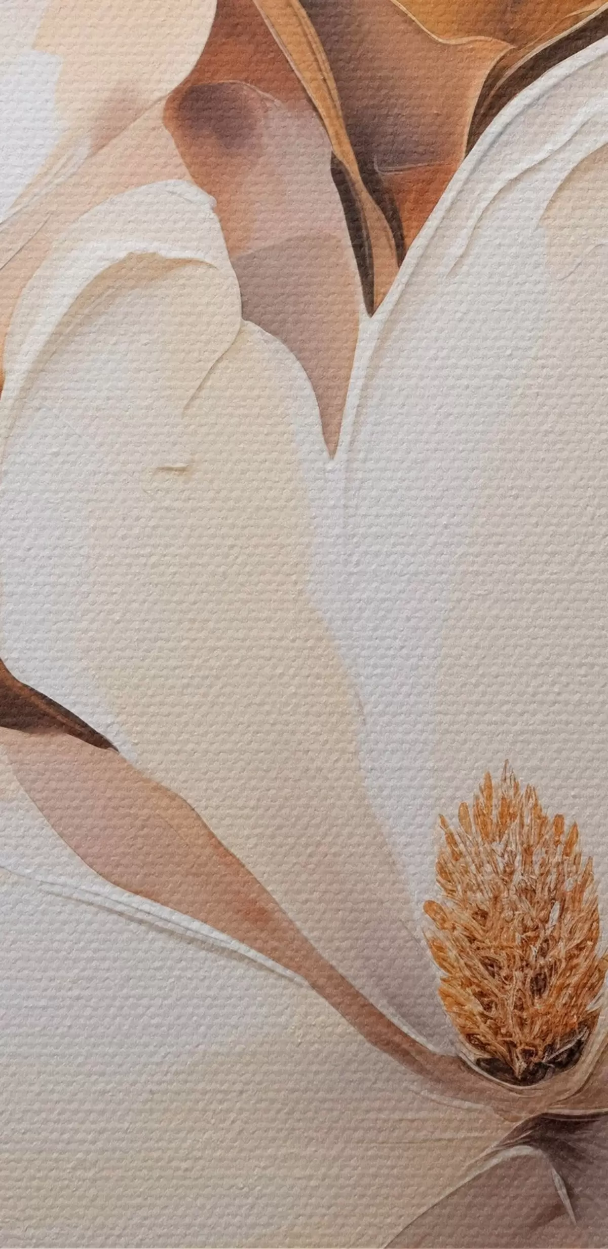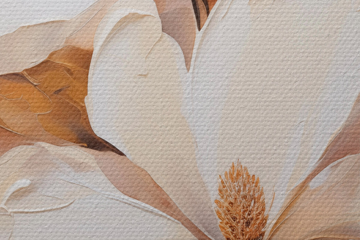 Bild Weiße Magnolienblüten vor einem weichen, unscharfen Hintergrund aus Beige- und Brauntönen, Malstil Nr r45572