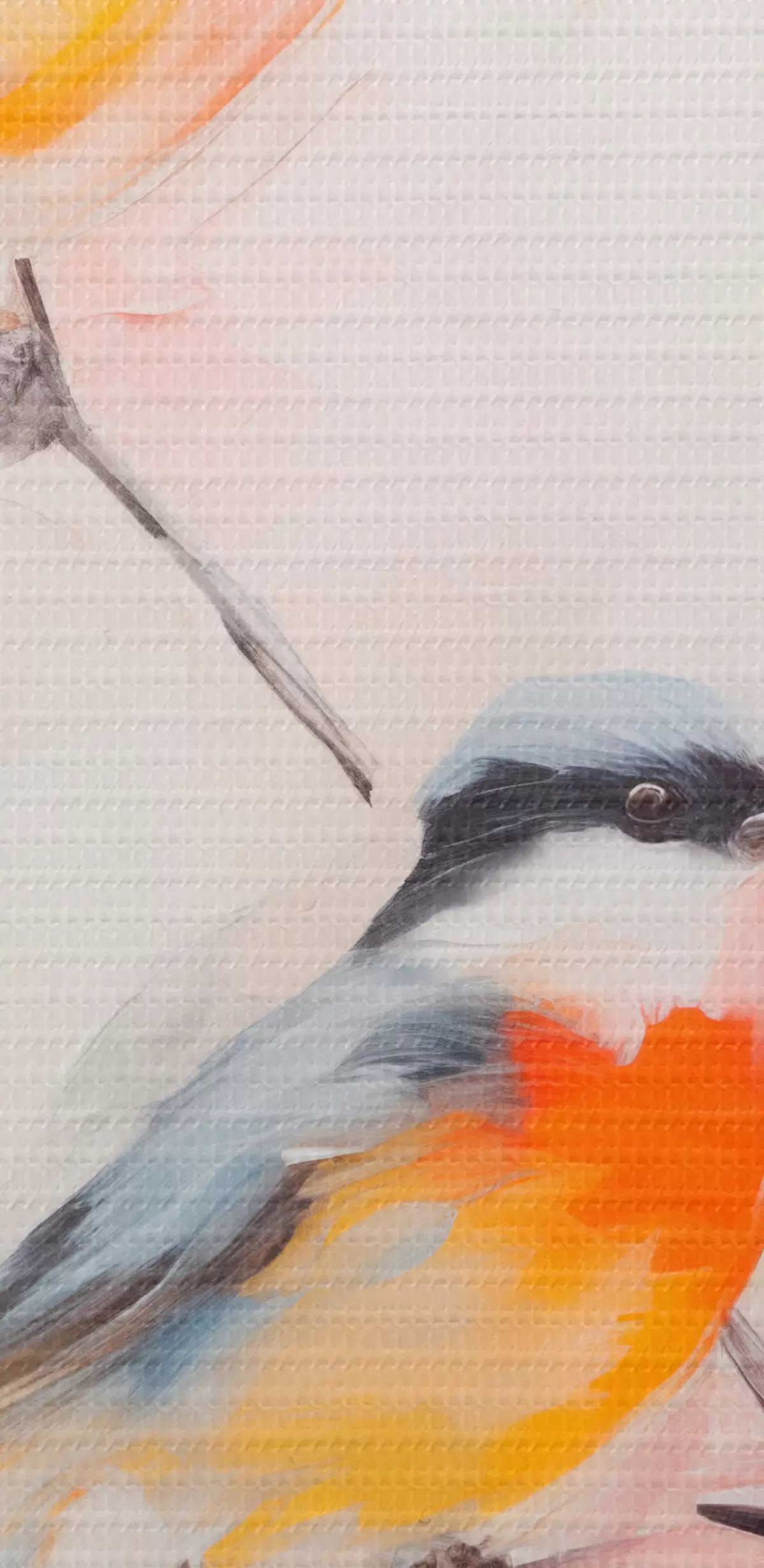 Bild Vögel auf Zweigen, weiche Pastellfarben, heller Hintergrund mit rosa und weißen Farbtönen Nr r45577