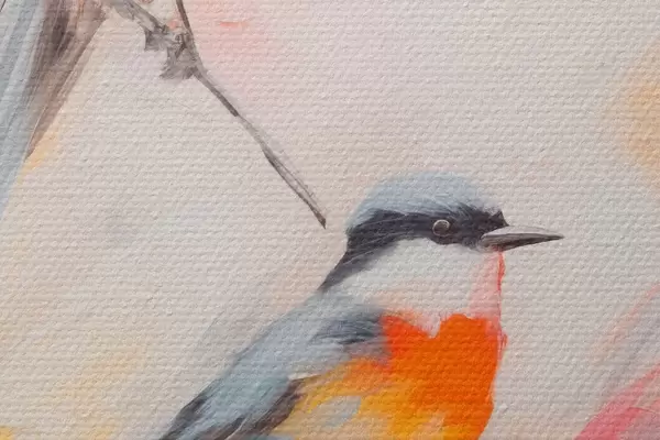 Bild Vögel auf Zweigen, weiche Pastellfarben, heller Hintergrund mit rosa und weißen Farbtönen Nr r45577