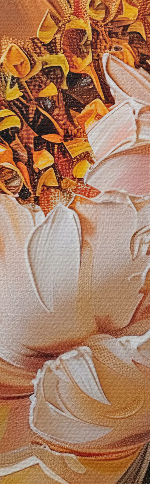 Drei Materialtypen stehen zur Verfügung: Economic Canvas - ein dichtes und haltbares Material für den Digitaldruck, identisch mit Malerleinwand, wasserfeste Oberfläche, realistische Wiedergabe von Details, mittelkörniges Material. Premium Canvas - die Textur ähnelt der einer Malerleinwand (verwobene kleine Fäden). Weiche, detaillierte Wiedergabe des Bildes auf einer matten Oberfläche. Eco-Premium - hochwertiges Gewebe aus 100% Baumwolle. Dank der natürlichen Baumwollfasern ist das Material langlebig und verschleißfest. Hervorragende Farbwiedergabe und Detailtreue.