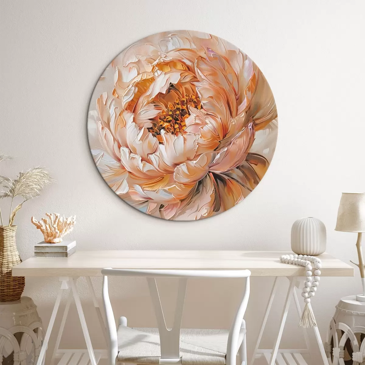 Runde Gemälde Zarte abstrakte Pfingstrose r45591