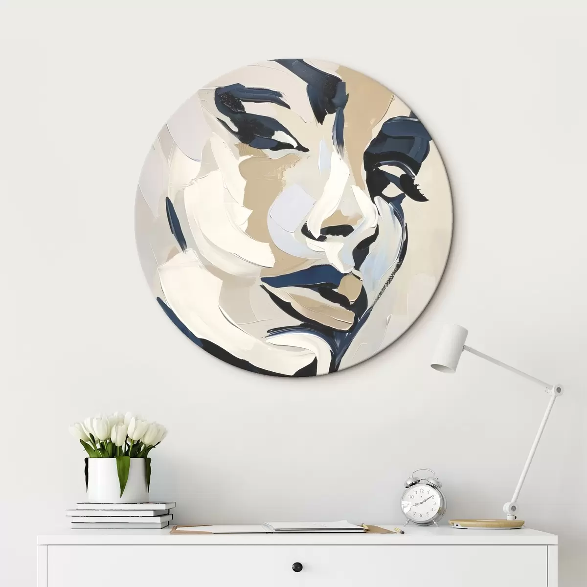 Runde Gemälde Abstraktes Porträt einer Frau mit imitierten Pinselstrichen r45593