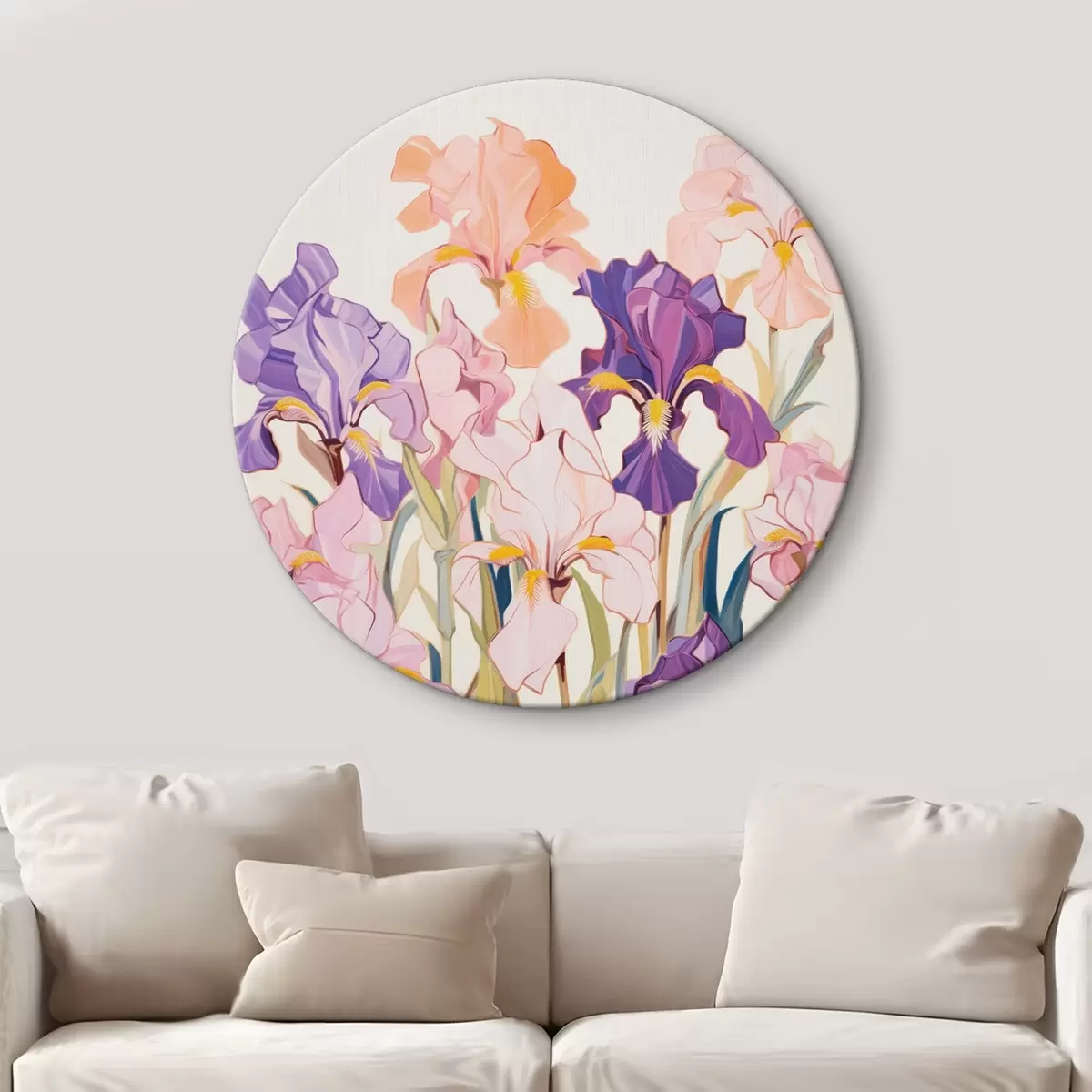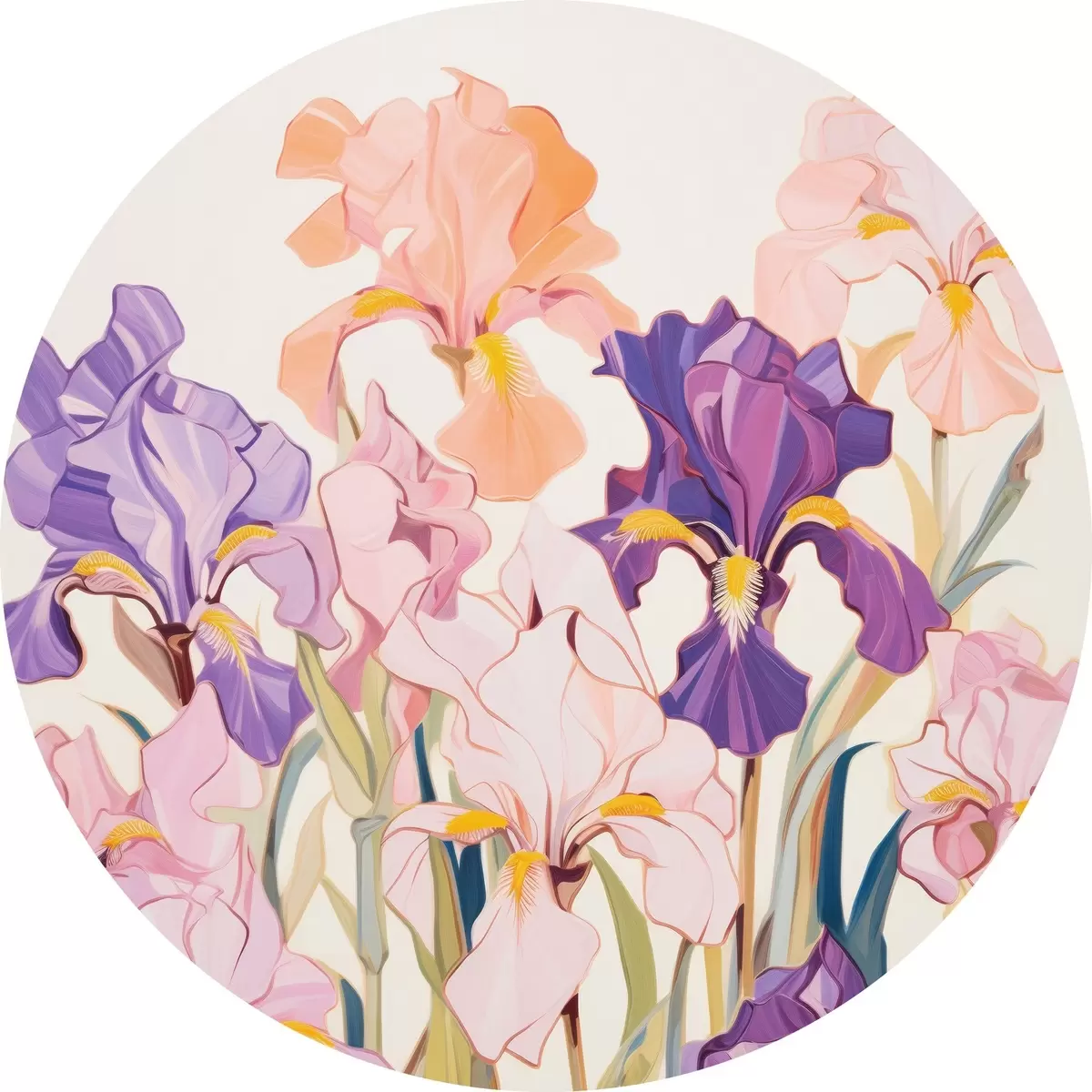 Runde Gemälde Schwertlilien: Komposition im minimalistischen Stil r45596