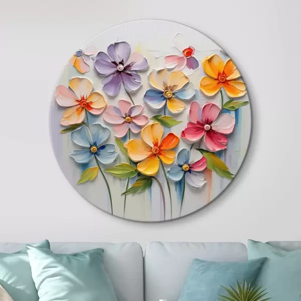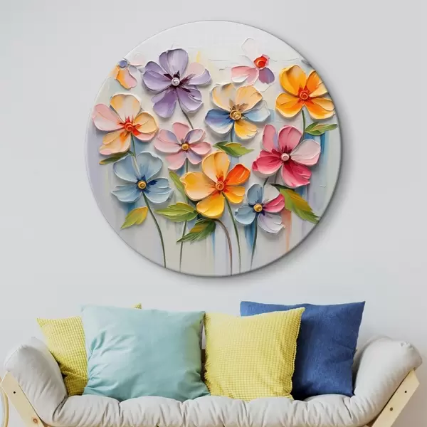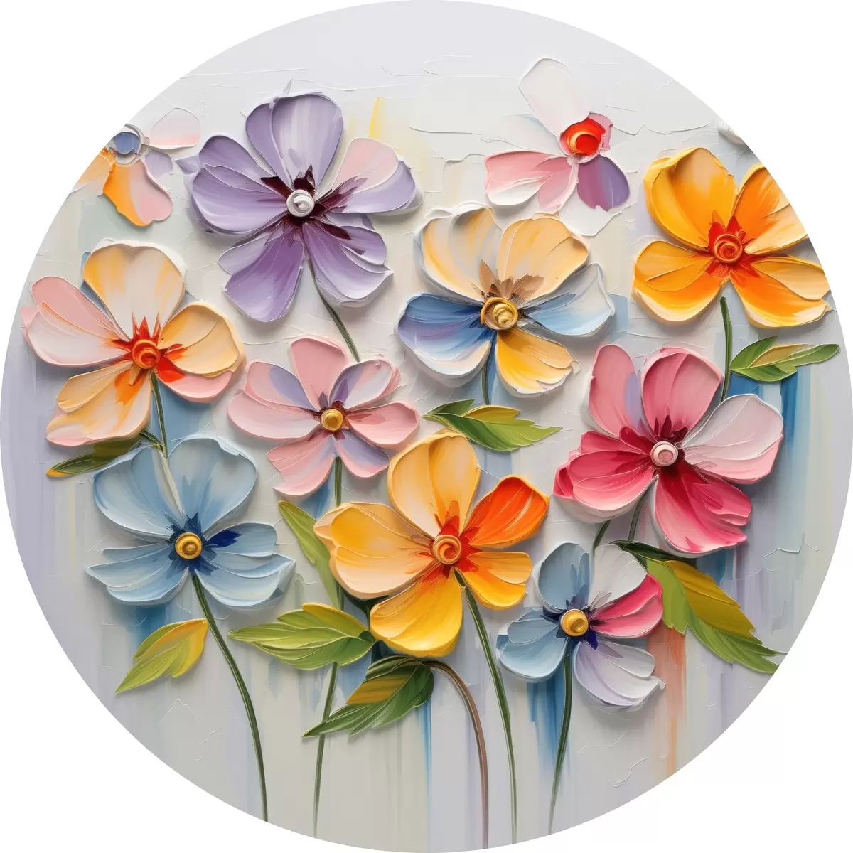 Runde Gemälde Blumenstillleben: mehrfarbige Blumen in Impasto-Technik r45598