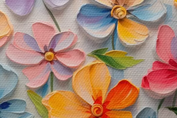 Bild Blumenstillleben: mehrfarbige Blumen in Impasto-Technik Nr r45598