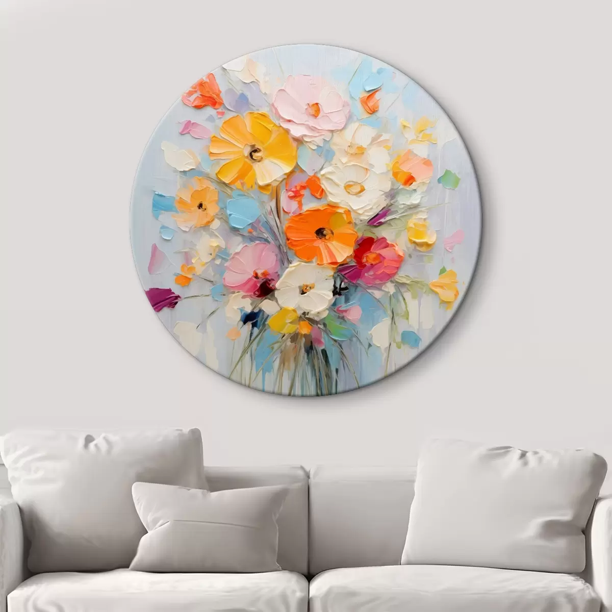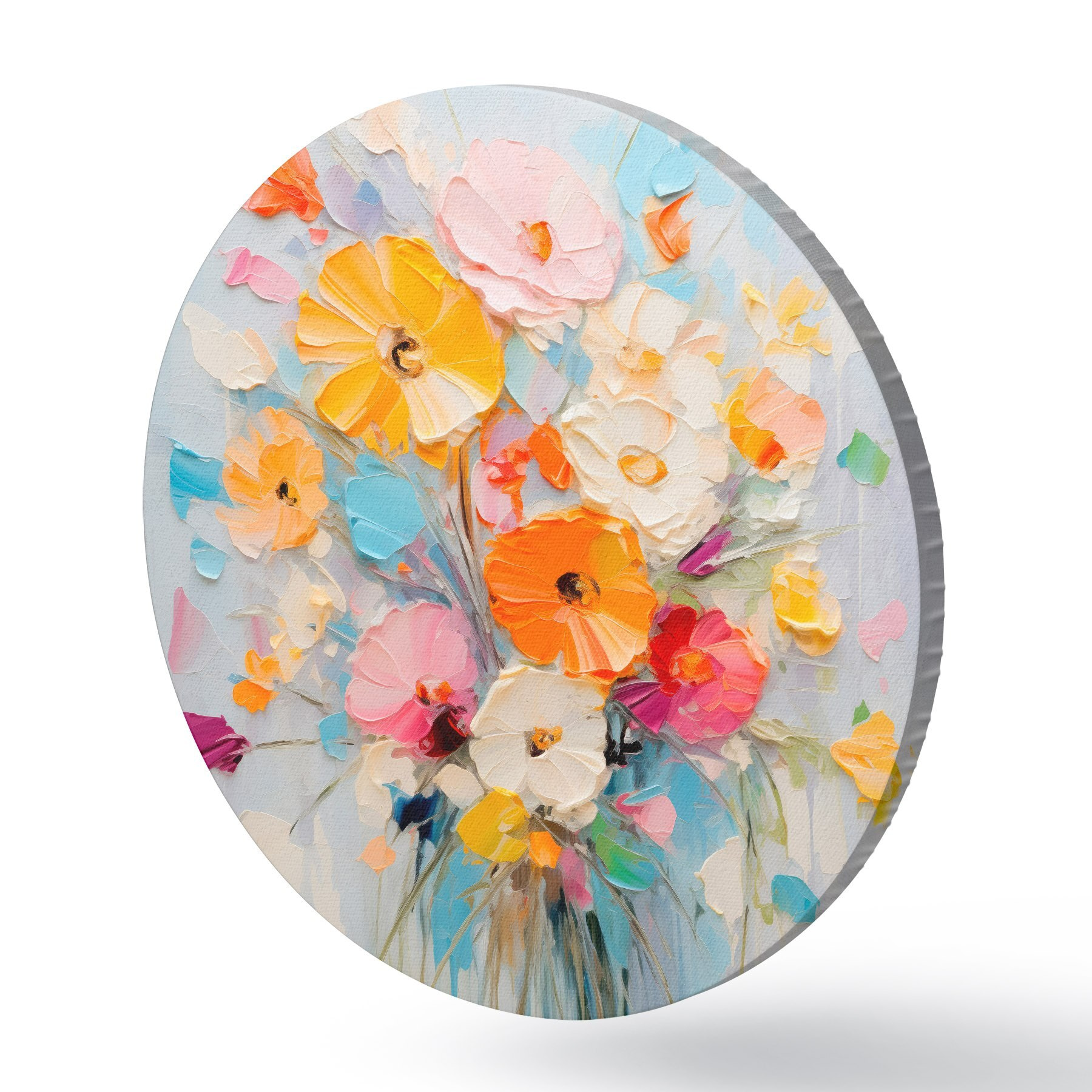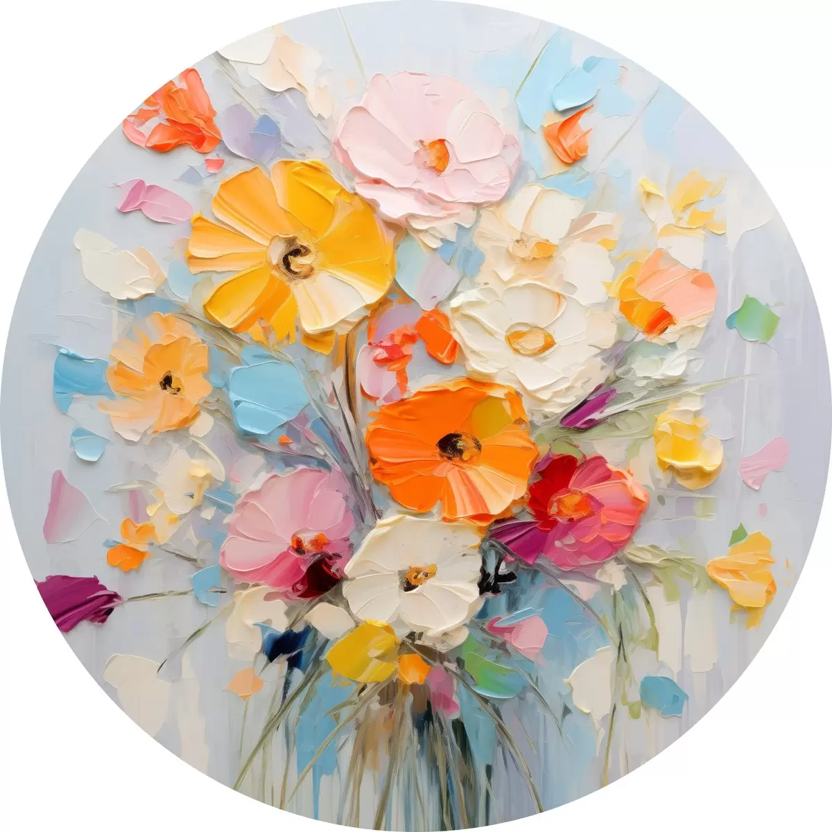Runde Gemälde Blumenmotiv: abstrakter Blumenstrauß in Pastelltönen r45599