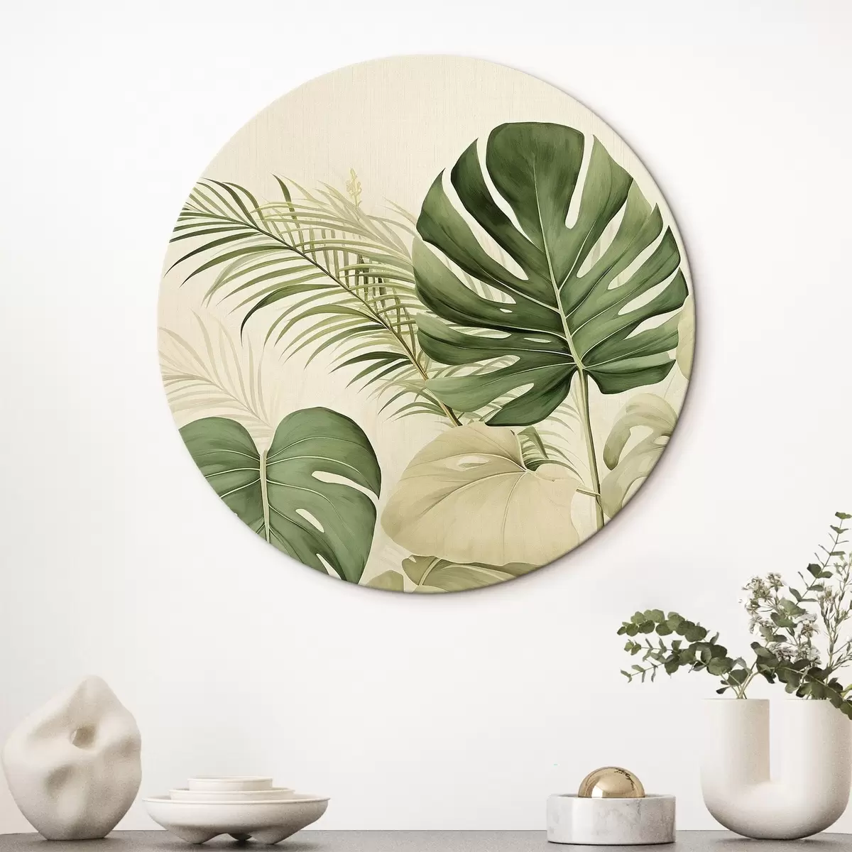 Runde Gemälde Monstera-Blätter und Tropical r45614