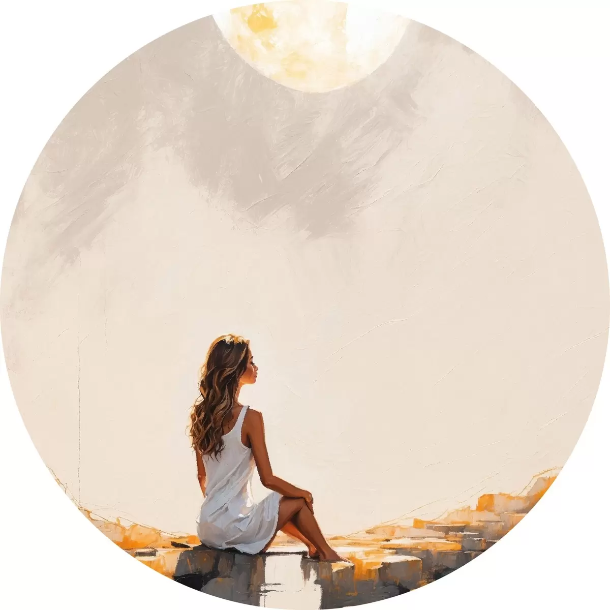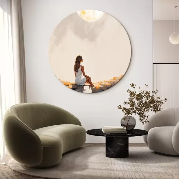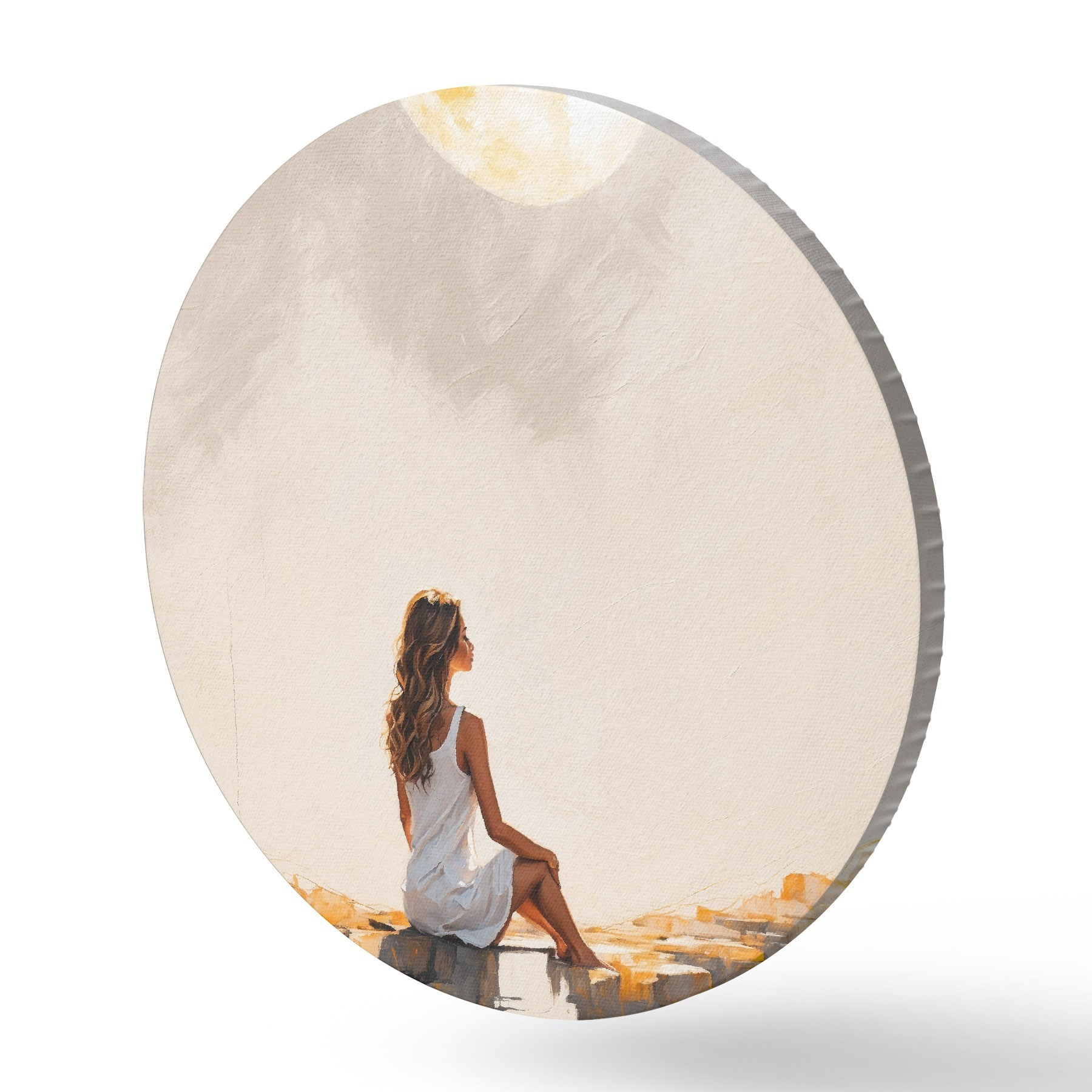 Runde Gemälde Mädchen im weißen Kleid sitzt unter einem großen Mond r45621