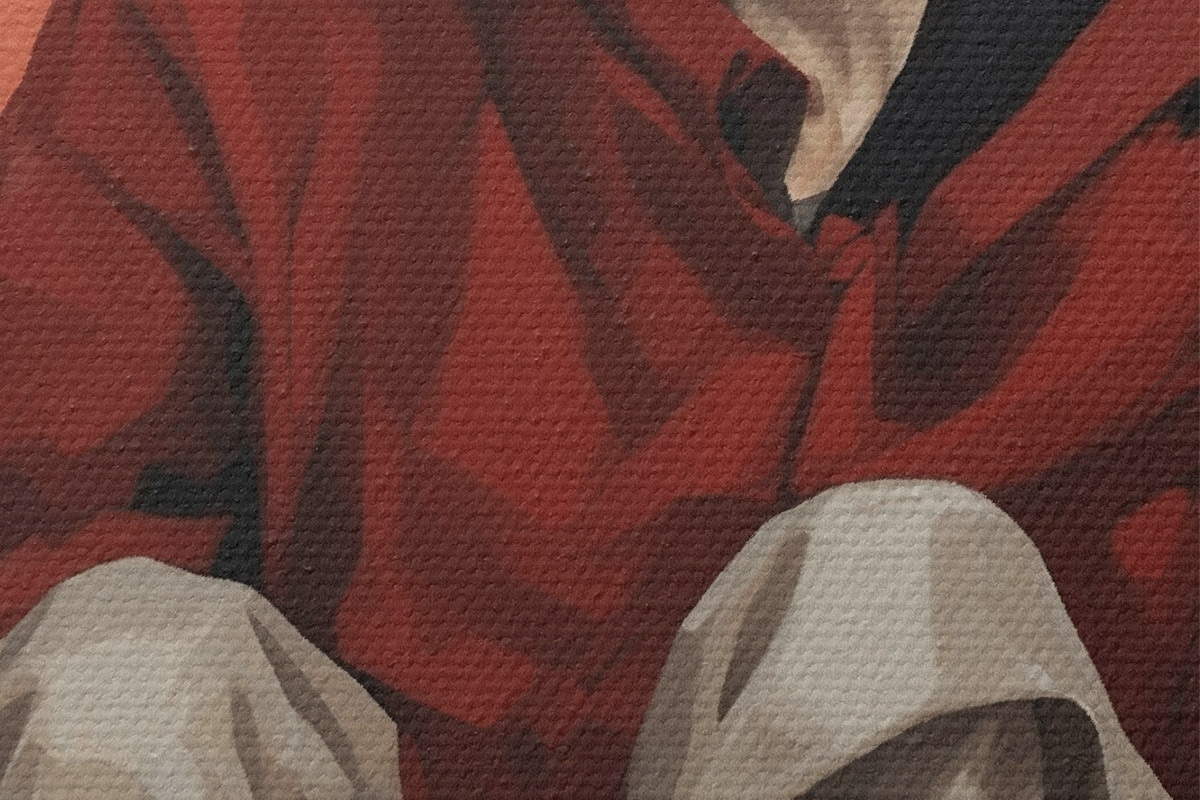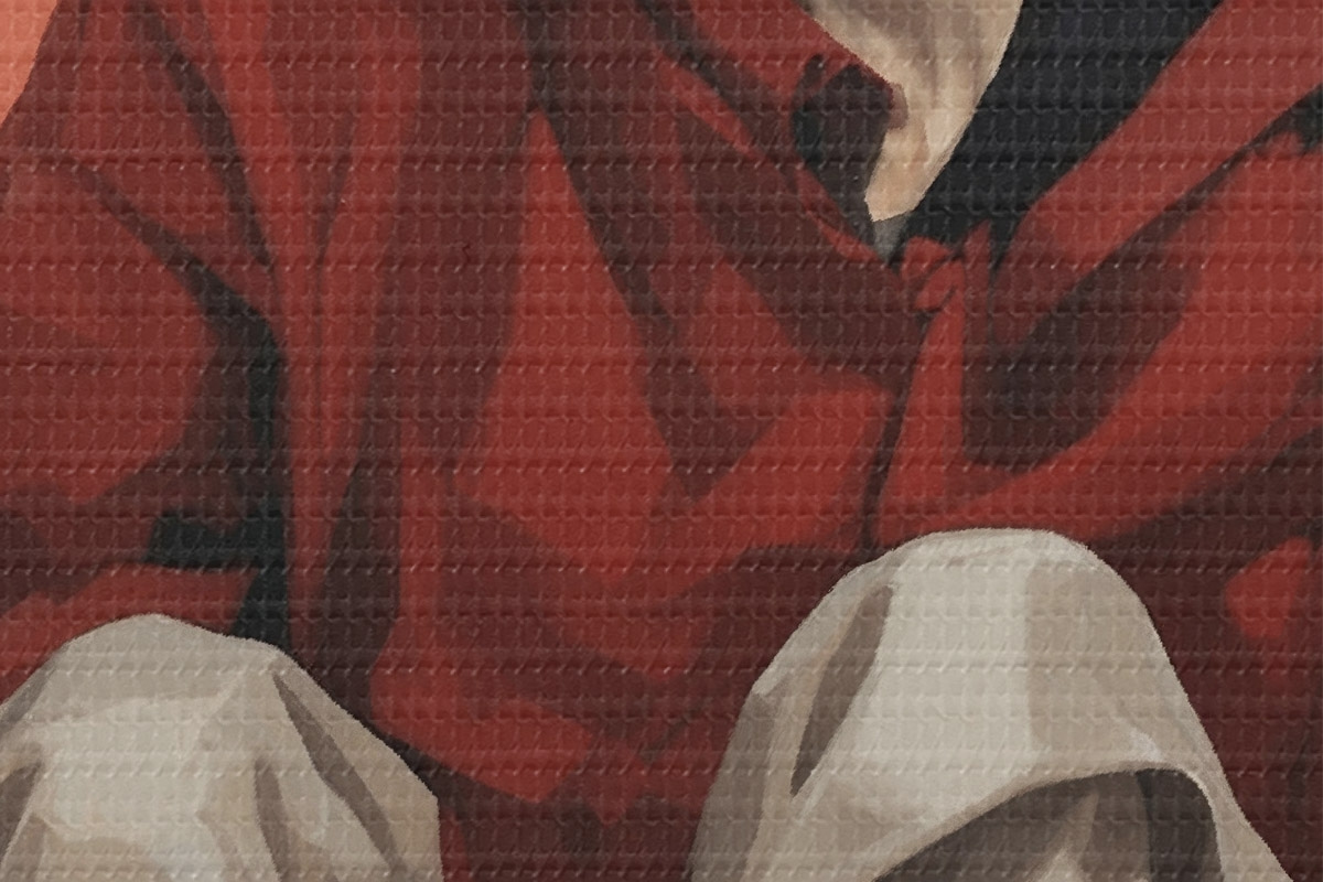 Um die Leinwand auf Keilrahmen zu spannen, ohne das Bild zu beschädigen, verwenden wir ein gespiegeltes Bild.