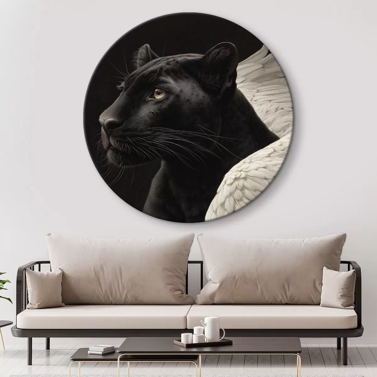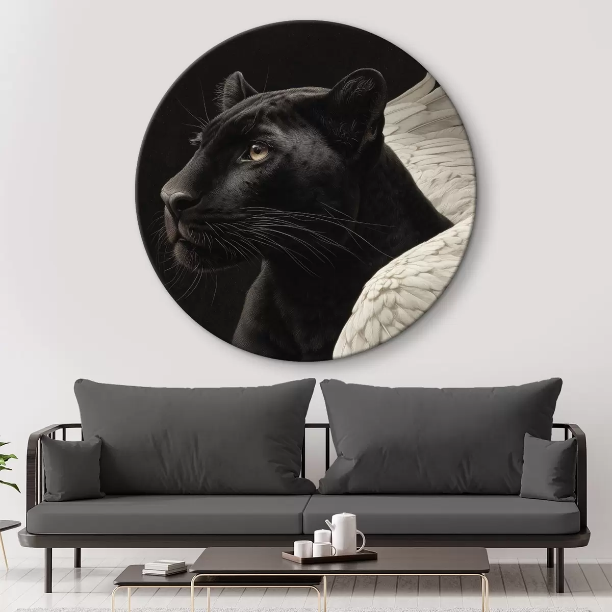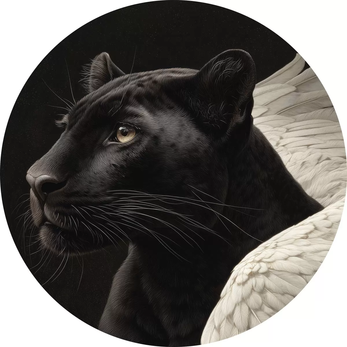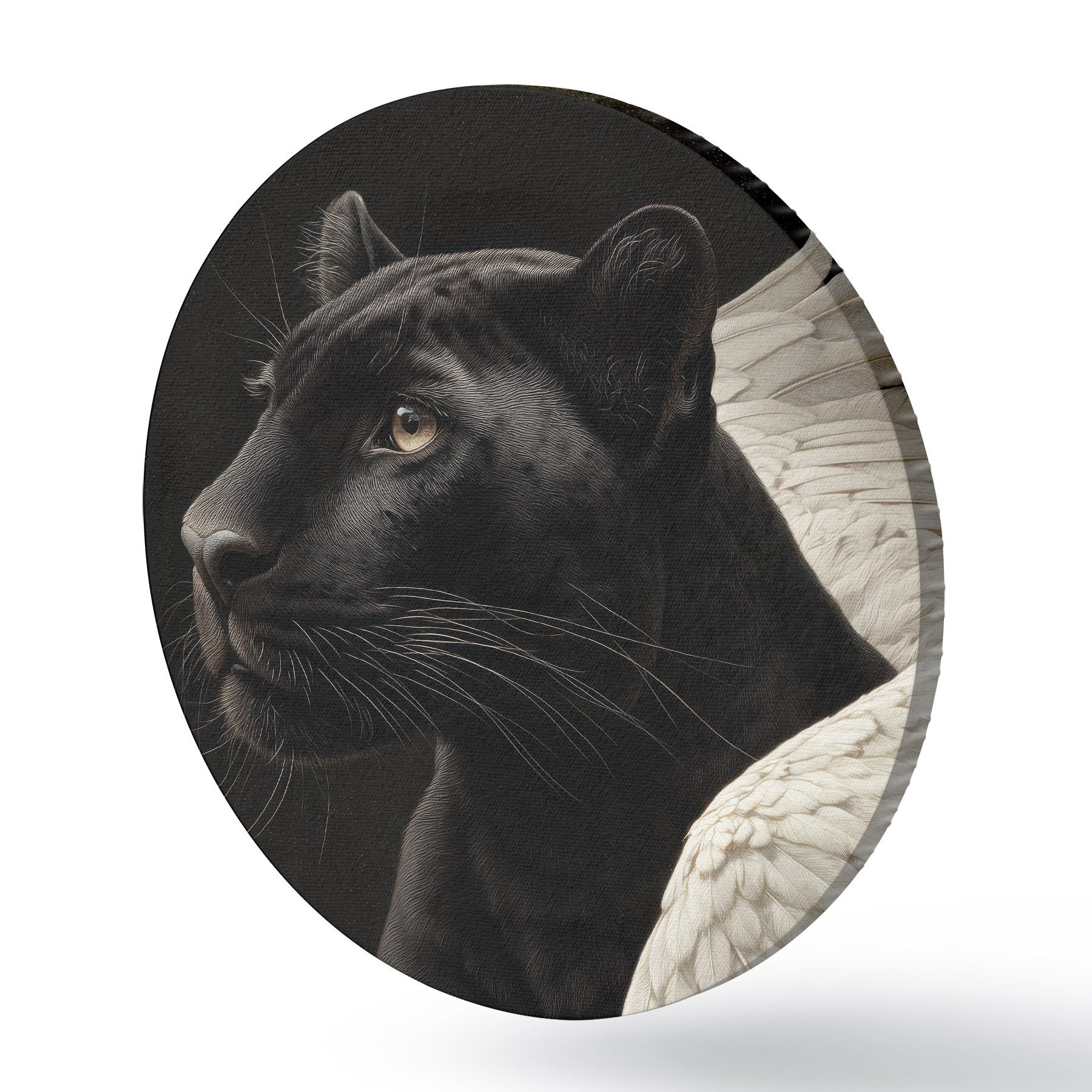 Runde Gemälde Schwarzer Panther mit Flügeln im Fantasy-Stil r45653