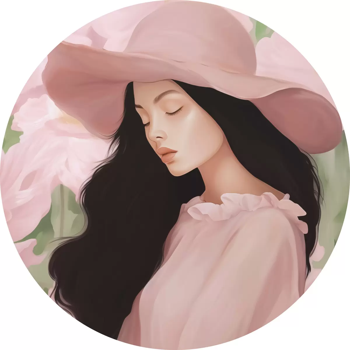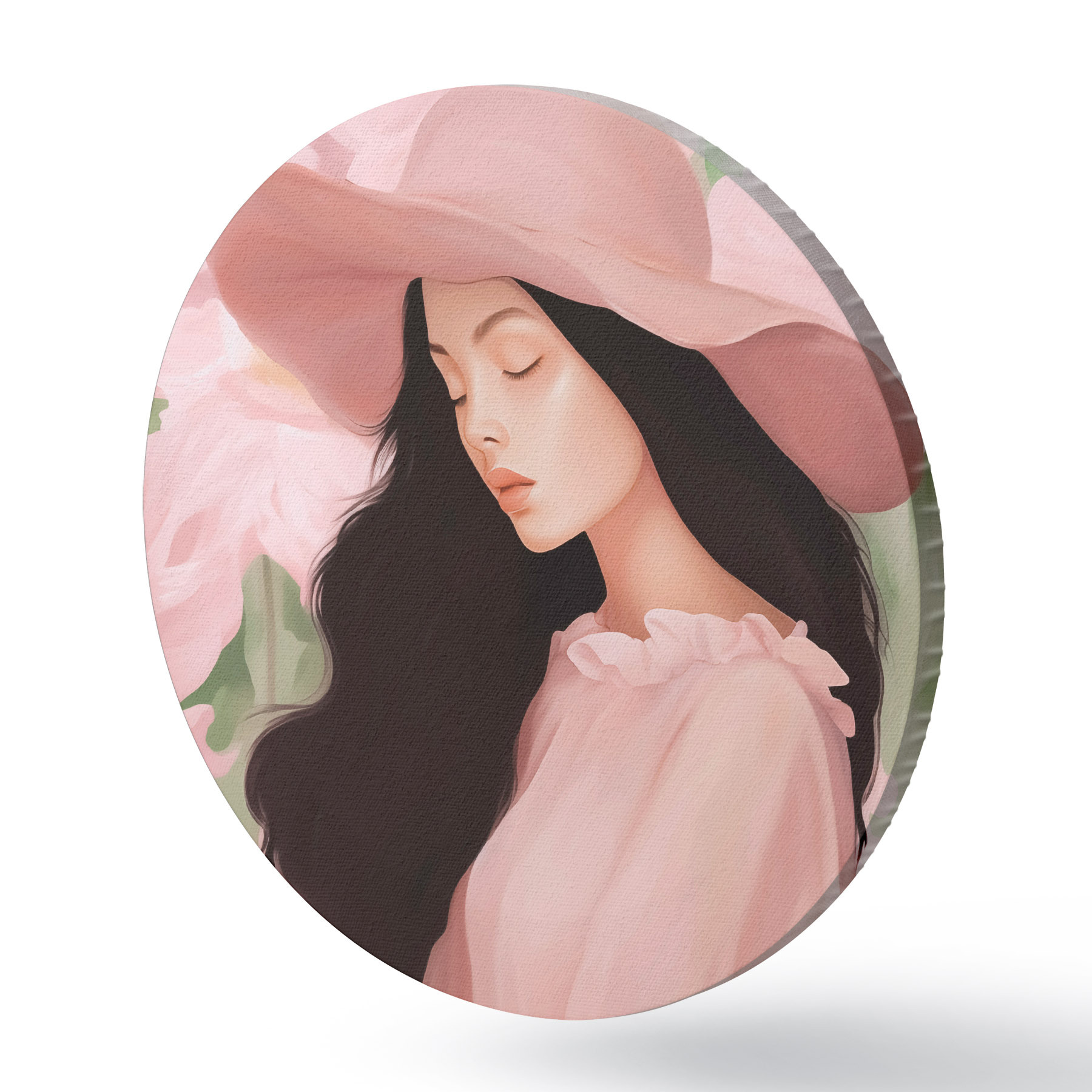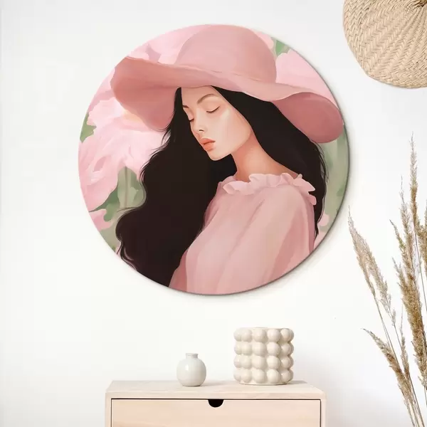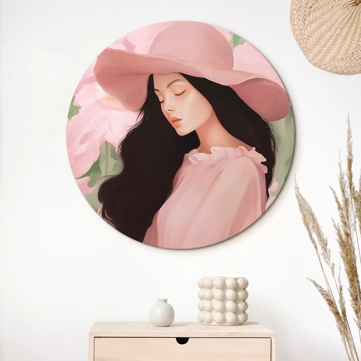 Runde Gemälde Mädchen mit Hut r45677
