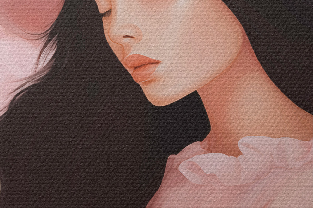 Um die Leinwand auf Keilrahmen zu spannen, ohne das Bild zu beschädigen, verwenden wir ein gespiegeltes Bild.