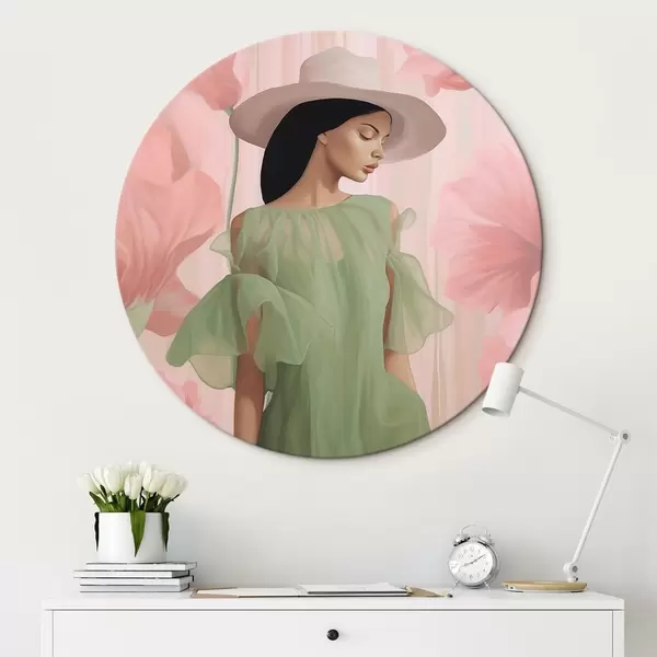 Runde Gemälde Mädchen mit Hut zwischen Blumen r45678
