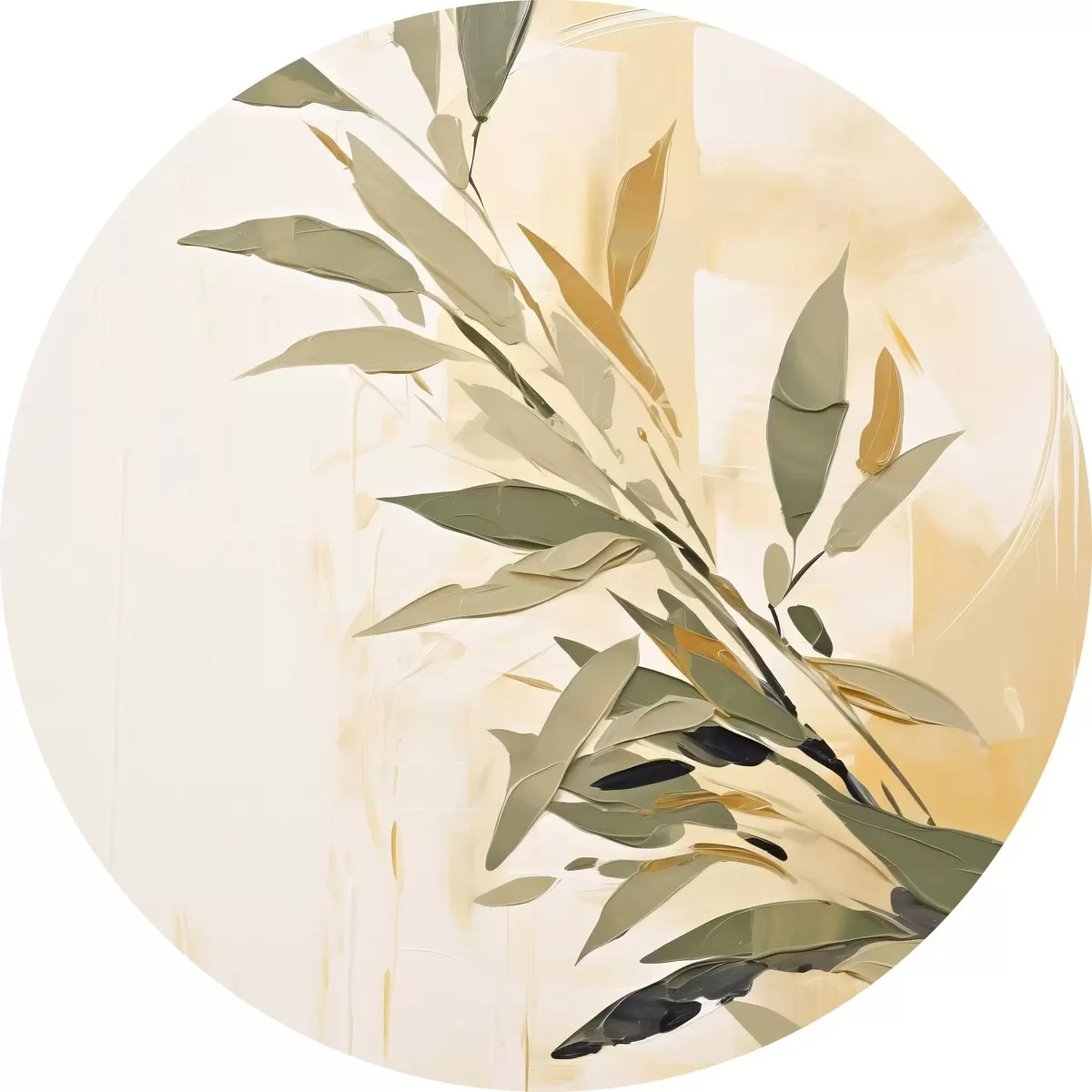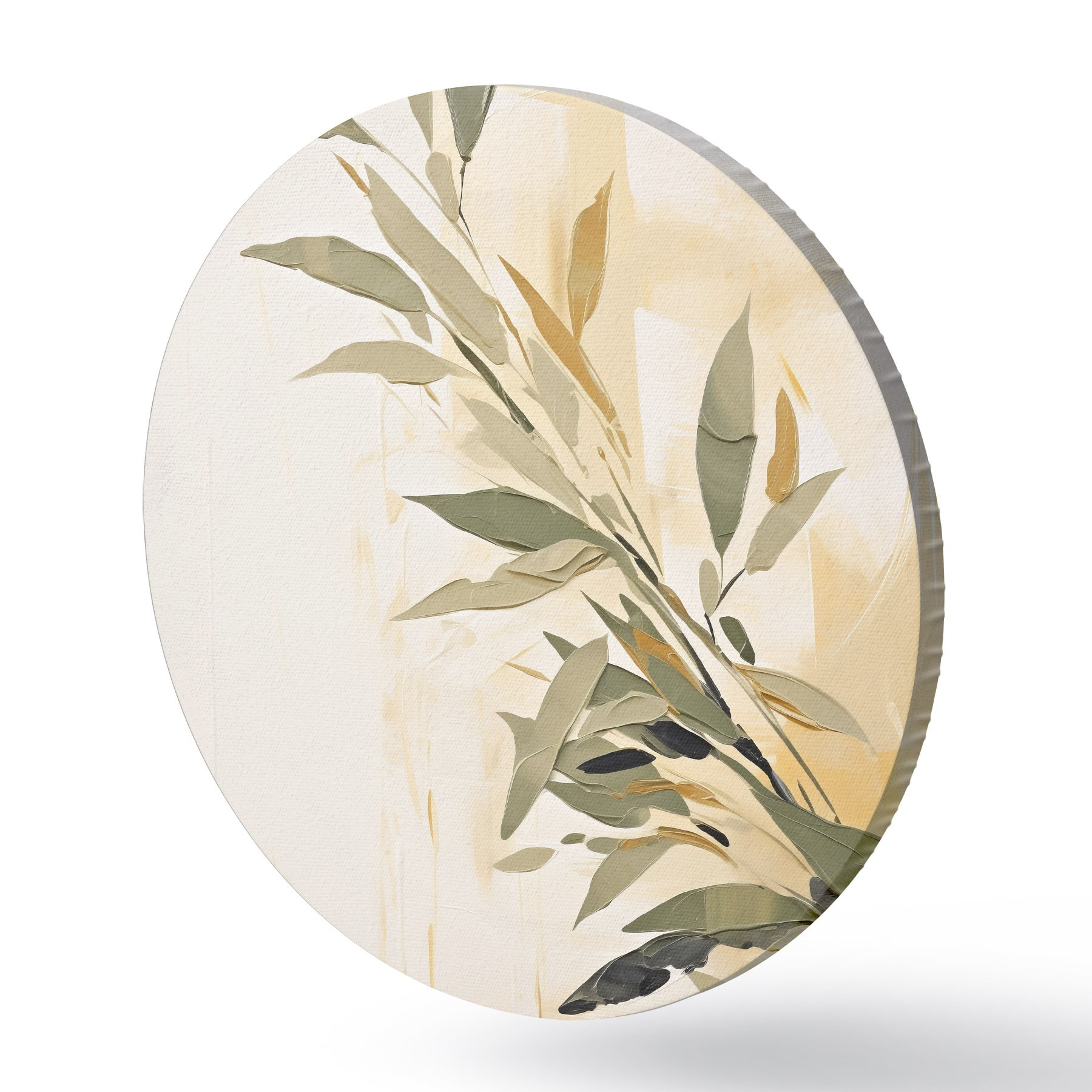 Runde Gemälde Botanischer Zweig mit grünen Blättern auf einem warmen Hintergrund r45690