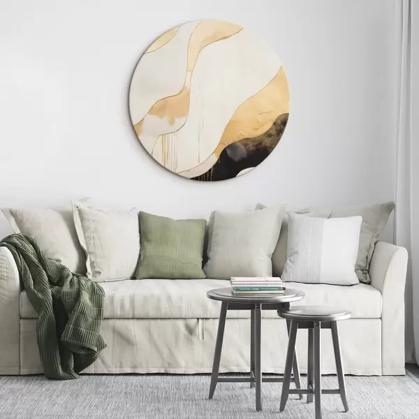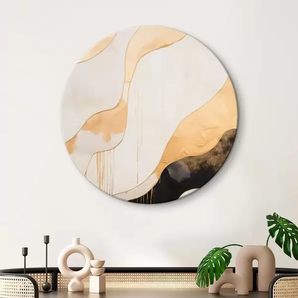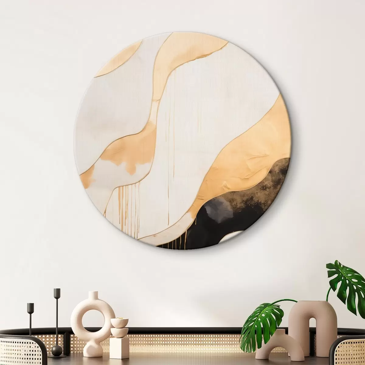 Runde Gemälde Abstrakte orangefarbene und schwarze Wellenlinien r45694