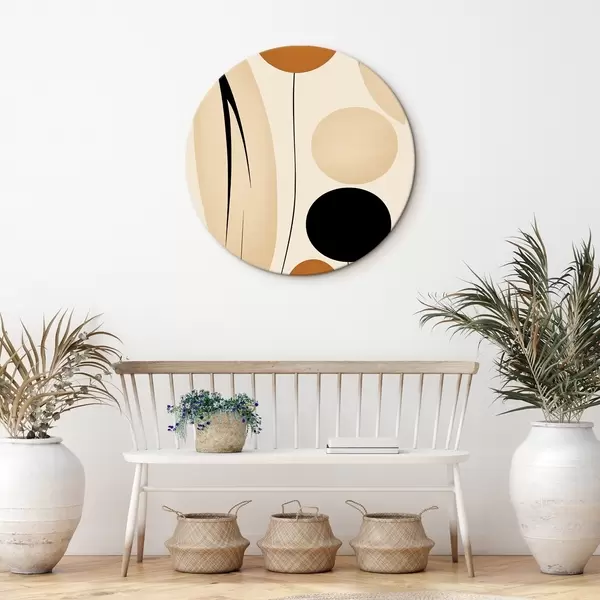 Runde Gemälde Abstrakte Komposition mit schwarzen und orangefarbenen Kreisen r45700