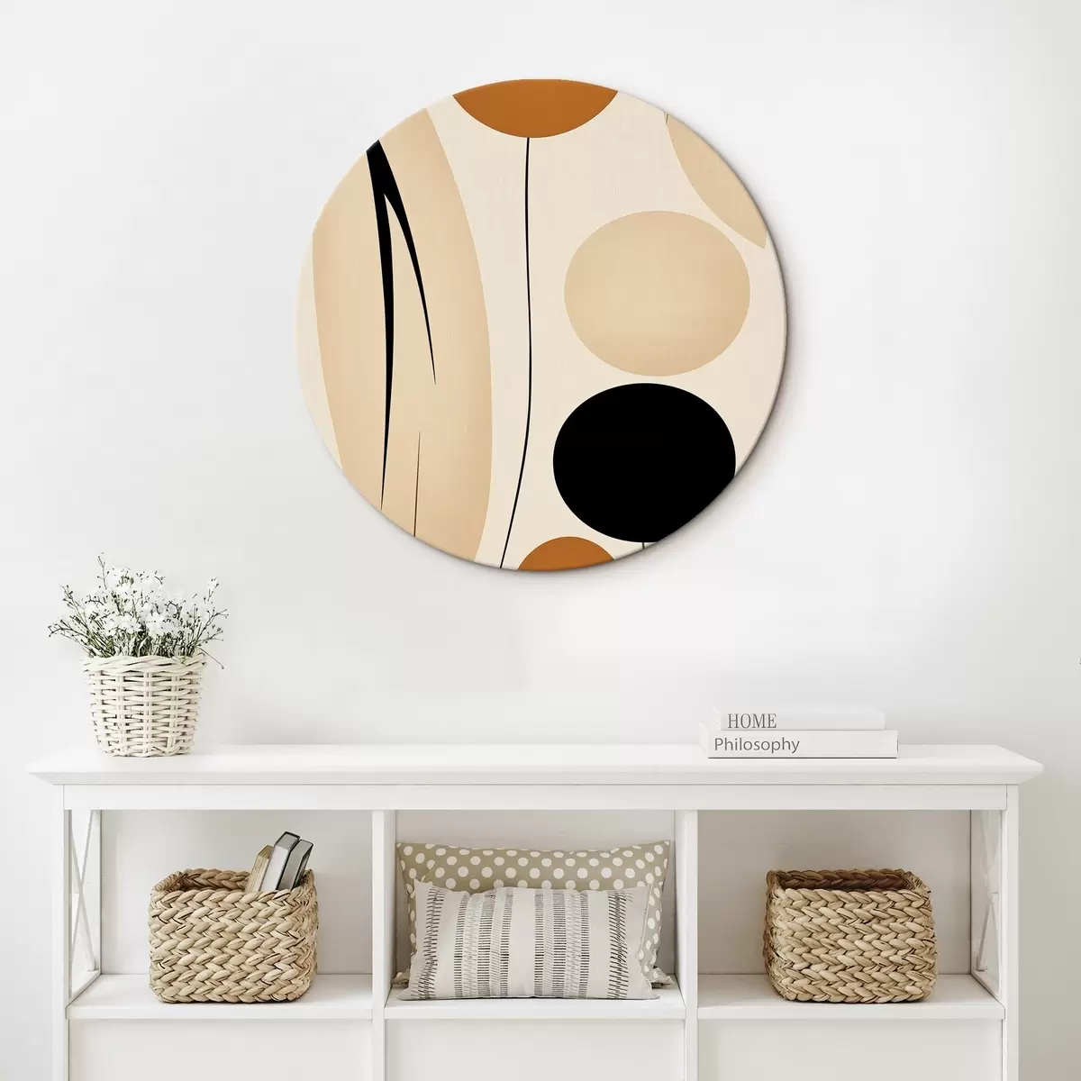 Runde Gemälde Abstrakte Komposition mit schwarzen und orangefarbenen Kreisen r45700