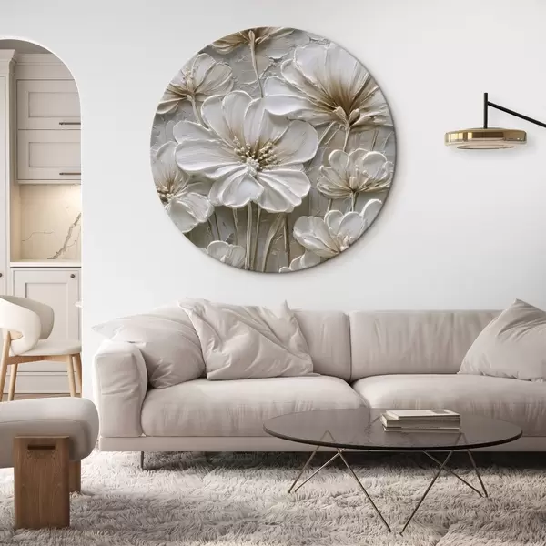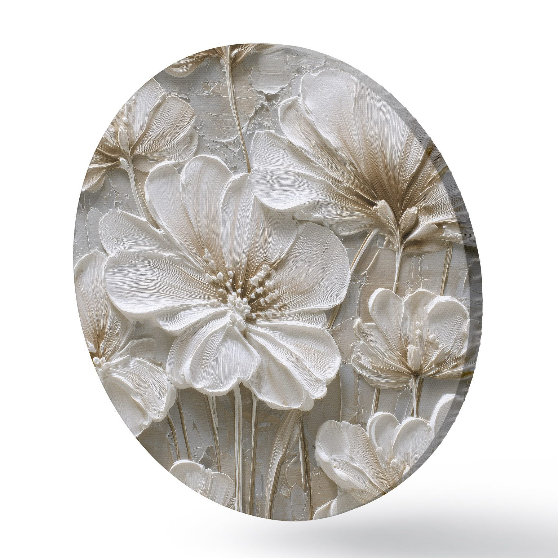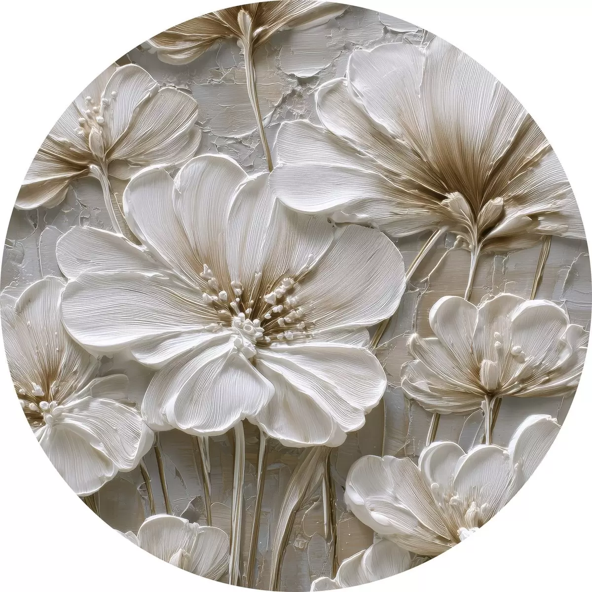 Runde Gemälde cremefarbene Blumen im Imitations-Impasto-Stil r45712