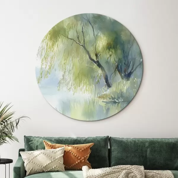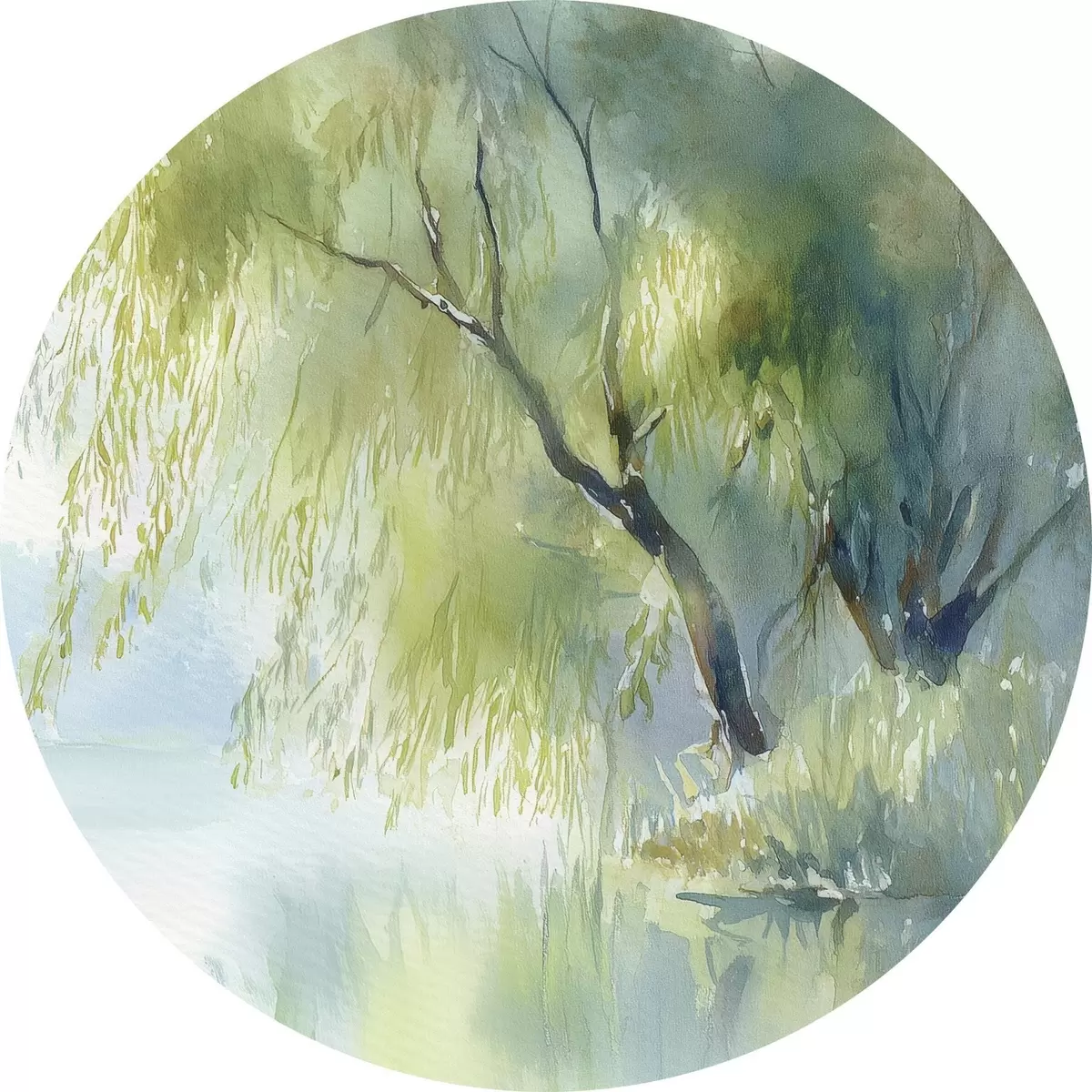 Runde Gemälde weidenbaum am Seeufer im Aquarellstil r45715