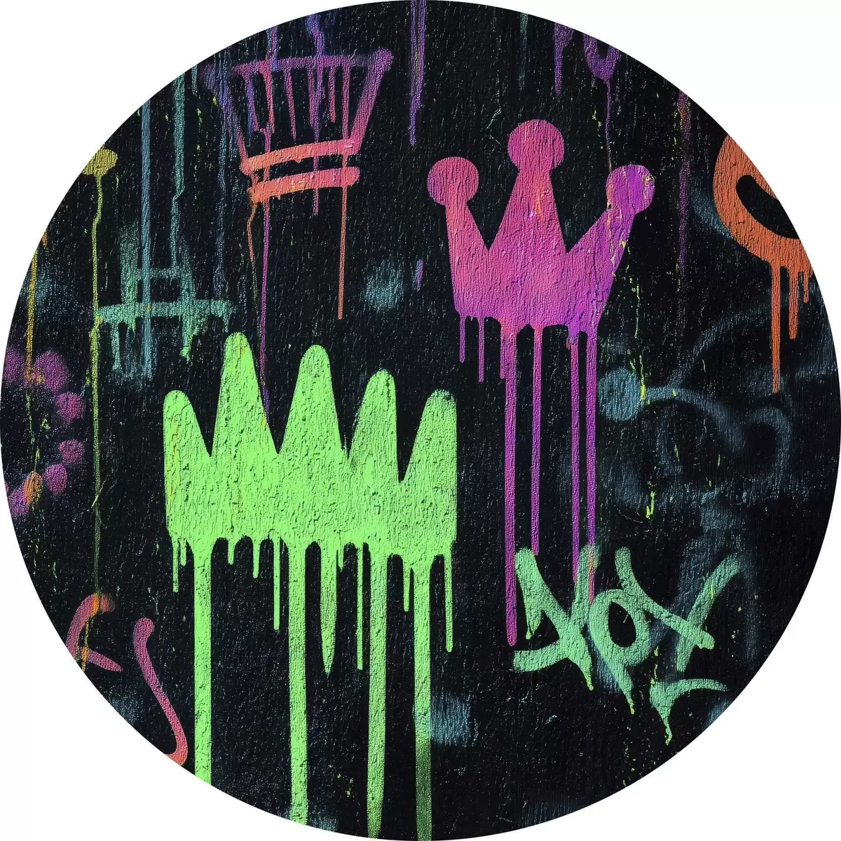 Runde Gemälde leuchtende Straßenkunst auf dunklem Hintergrund r45718