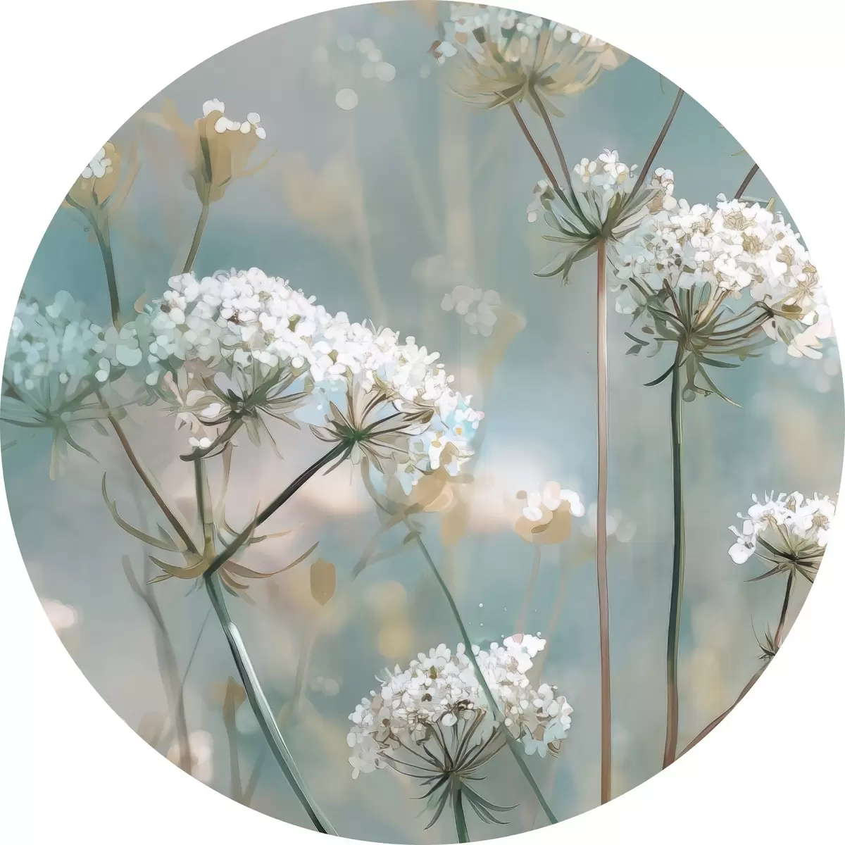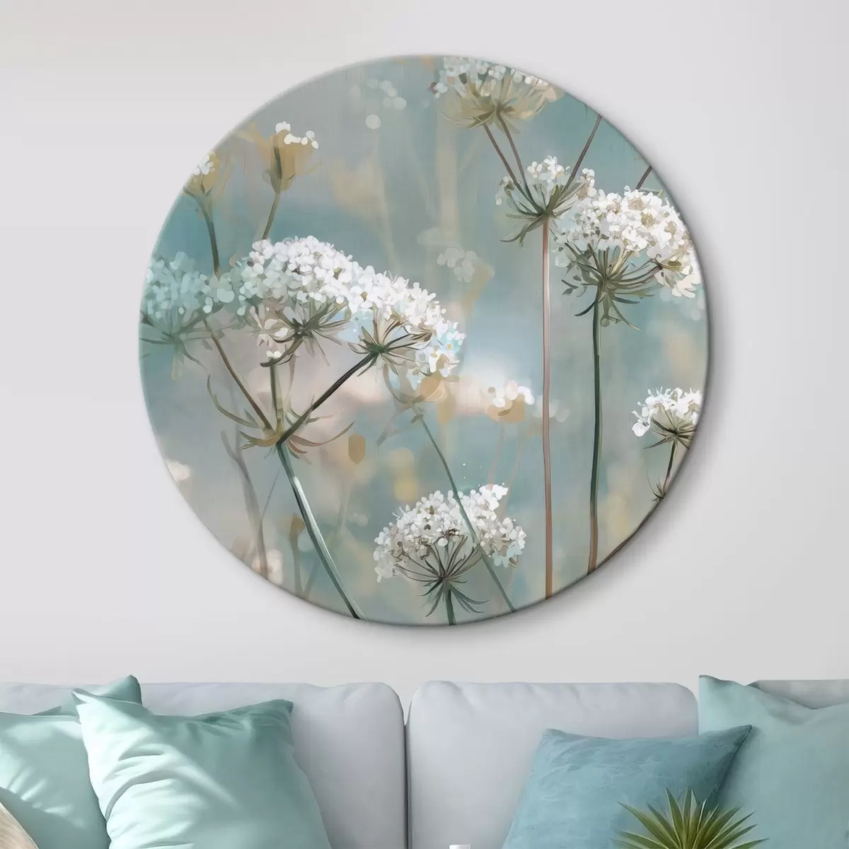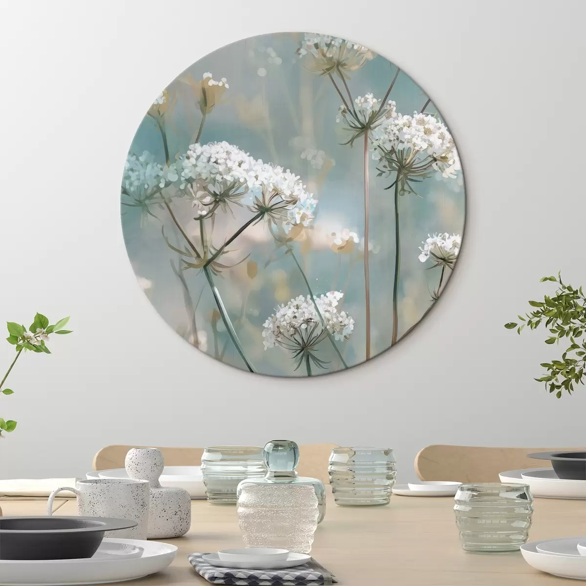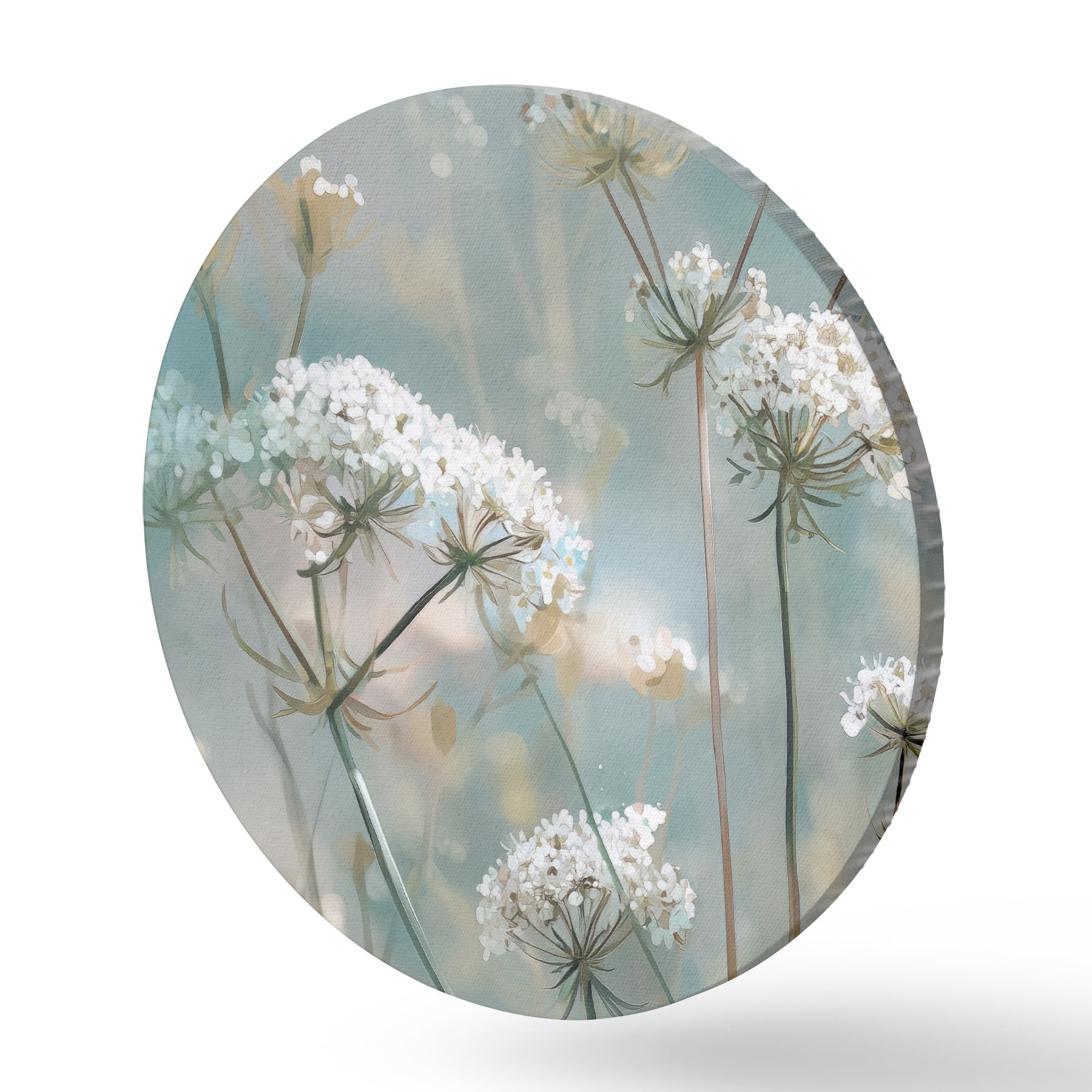 Runde Gemälde Königin-Annes-Spitze-Blumen im Aquarellstil auf blauem Hintergrund r45721