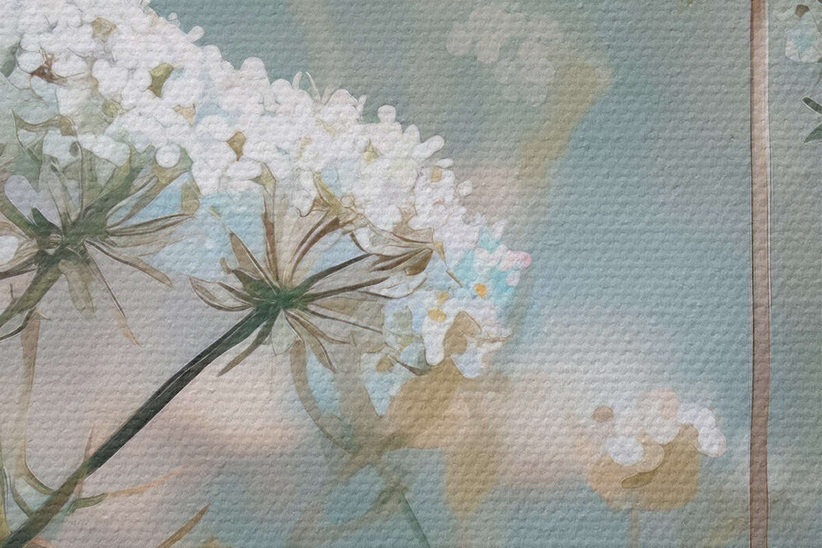 Bild Königin-Annes-Spitze-Blumen im Aquarellstil auf blauem Hintergrund Nr r45721