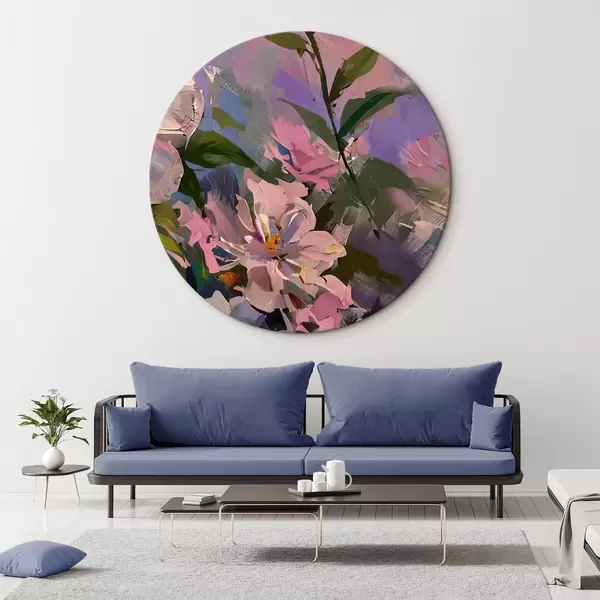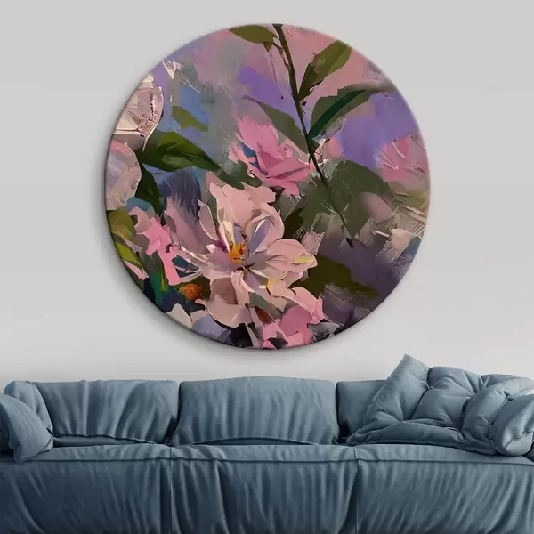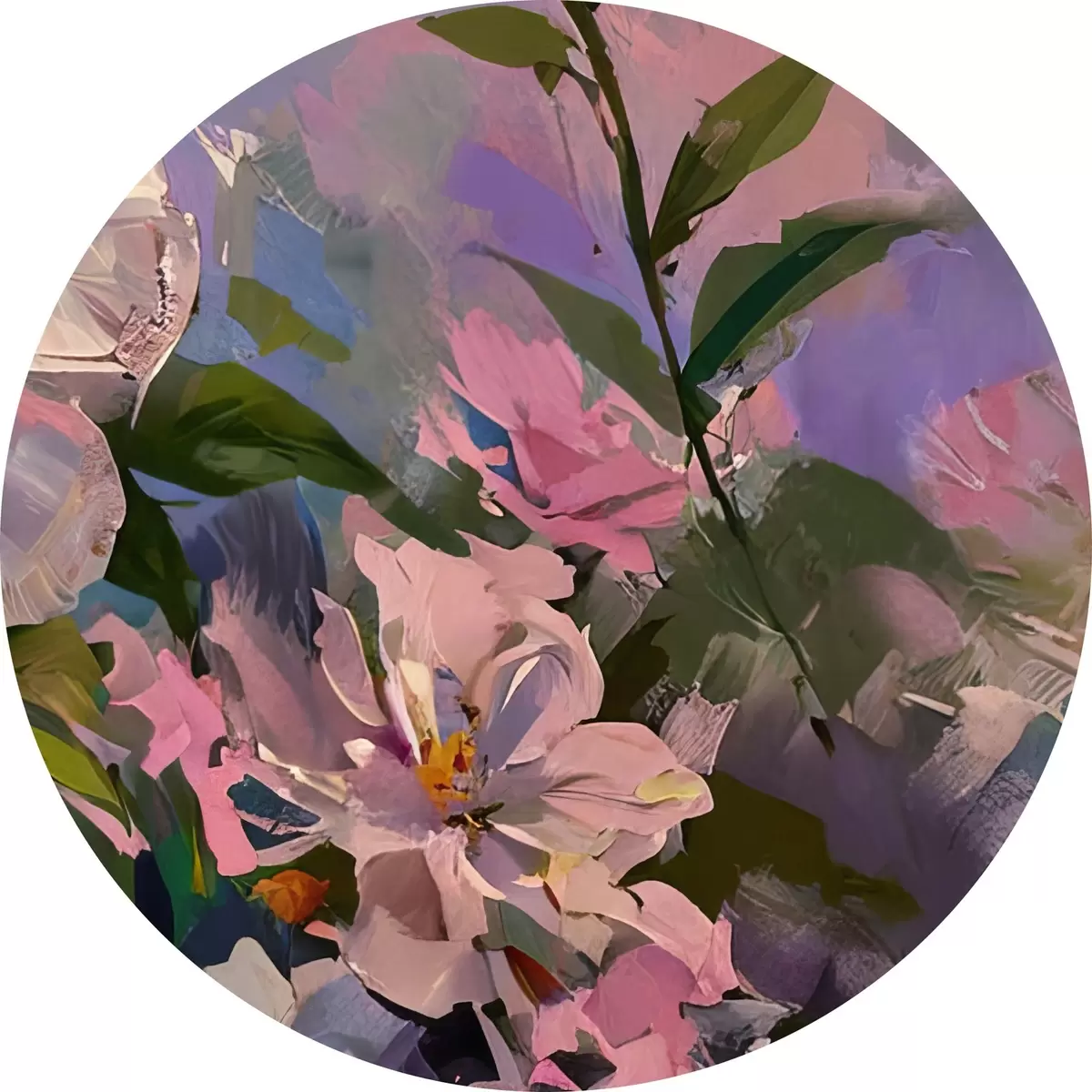Runde Gemälde rosa Blumen im Stil eines Ölgemäldes r45724
