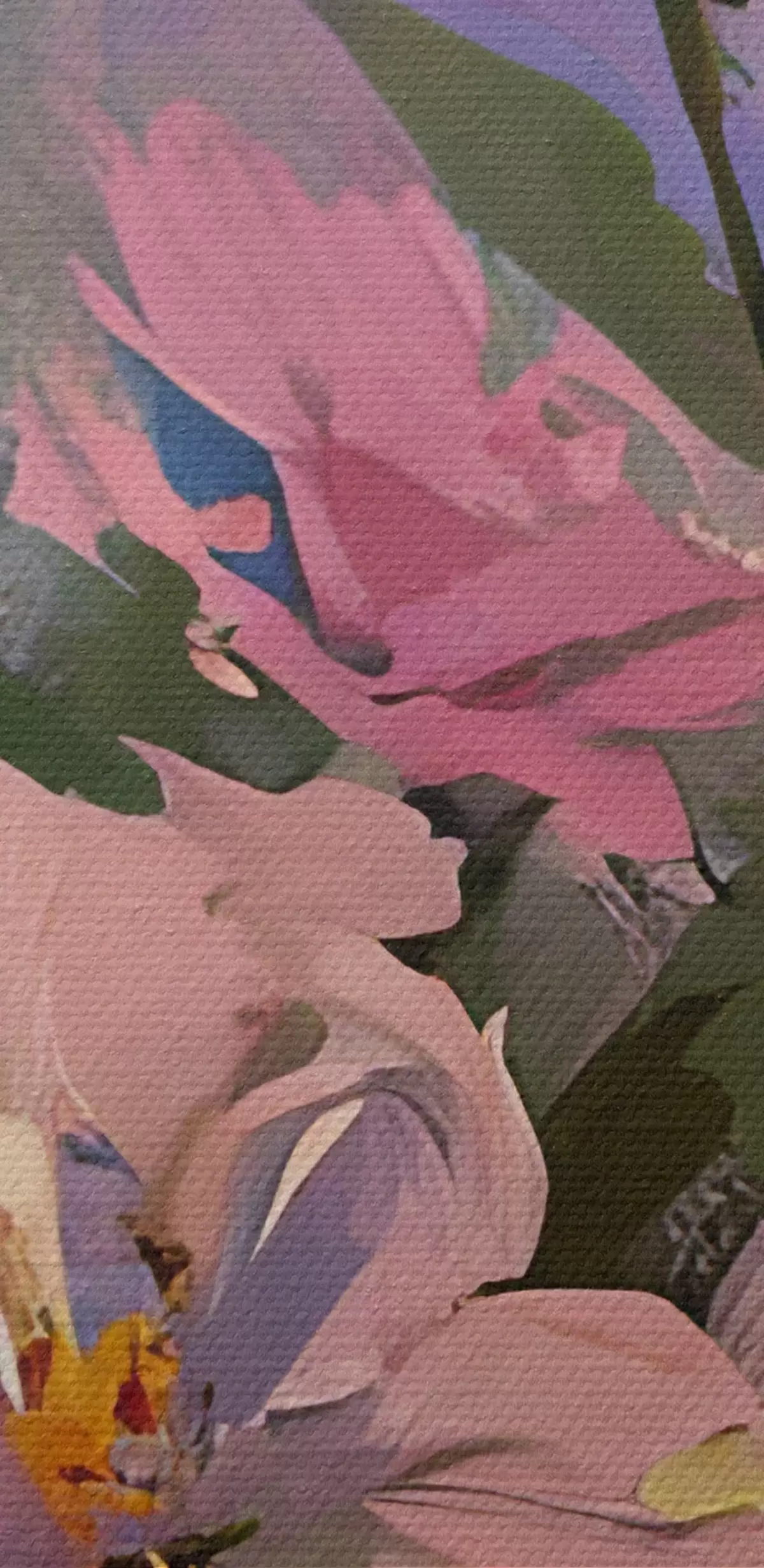 Drei Materialtypen stehen zur Verfügung: Economic Canvas - ein dichtes und haltbares Material für den Digitaldruck, identisch mit Malerleinwand, wasserfeste Oberfläche, realistische Wiedergabe von Details, mittelkörniges Material. Premium Canvas - die Textur ähnelt der einer Malerleinwand (verwobene kleine Fäden). Weiche, detaillierte Wiedergabe des Bildes auf einer matten Oberfläche. Eco-Premium - hochwertiges Gewebe aus 100% Baumwolle. Dank der natürlichen Baumwollfasern ist das Material langlebig und verschleißfest. Hervorragende Farbwiedergabe und Detailtreue.