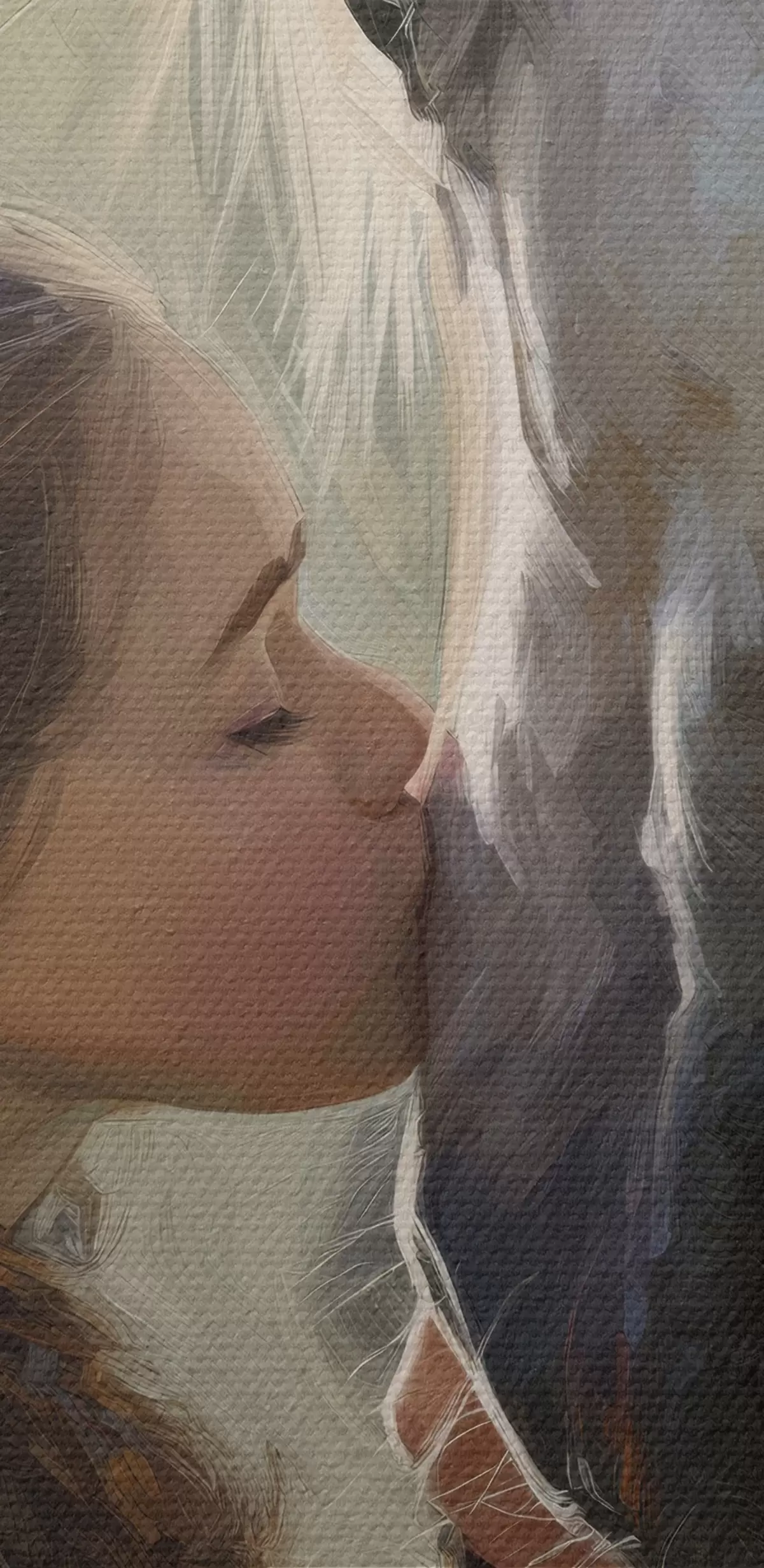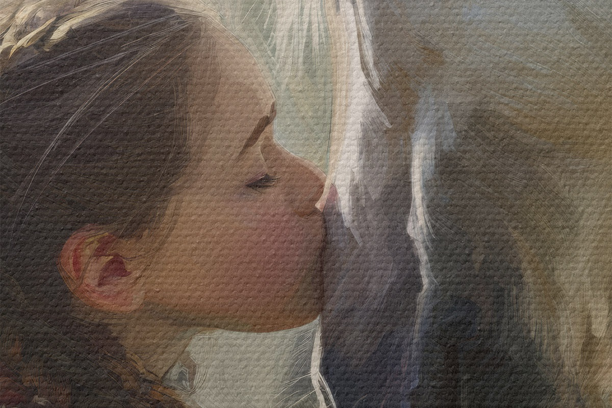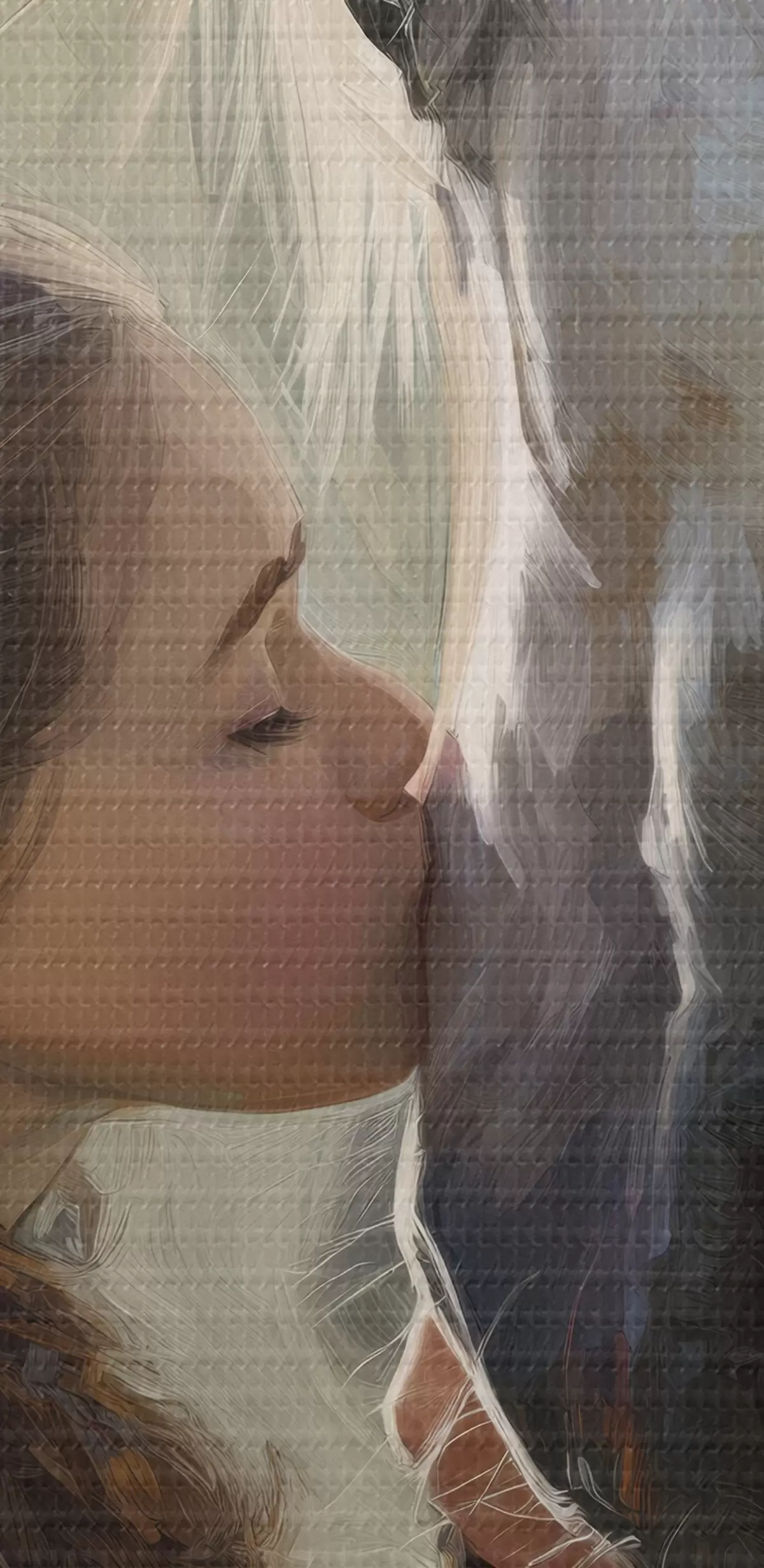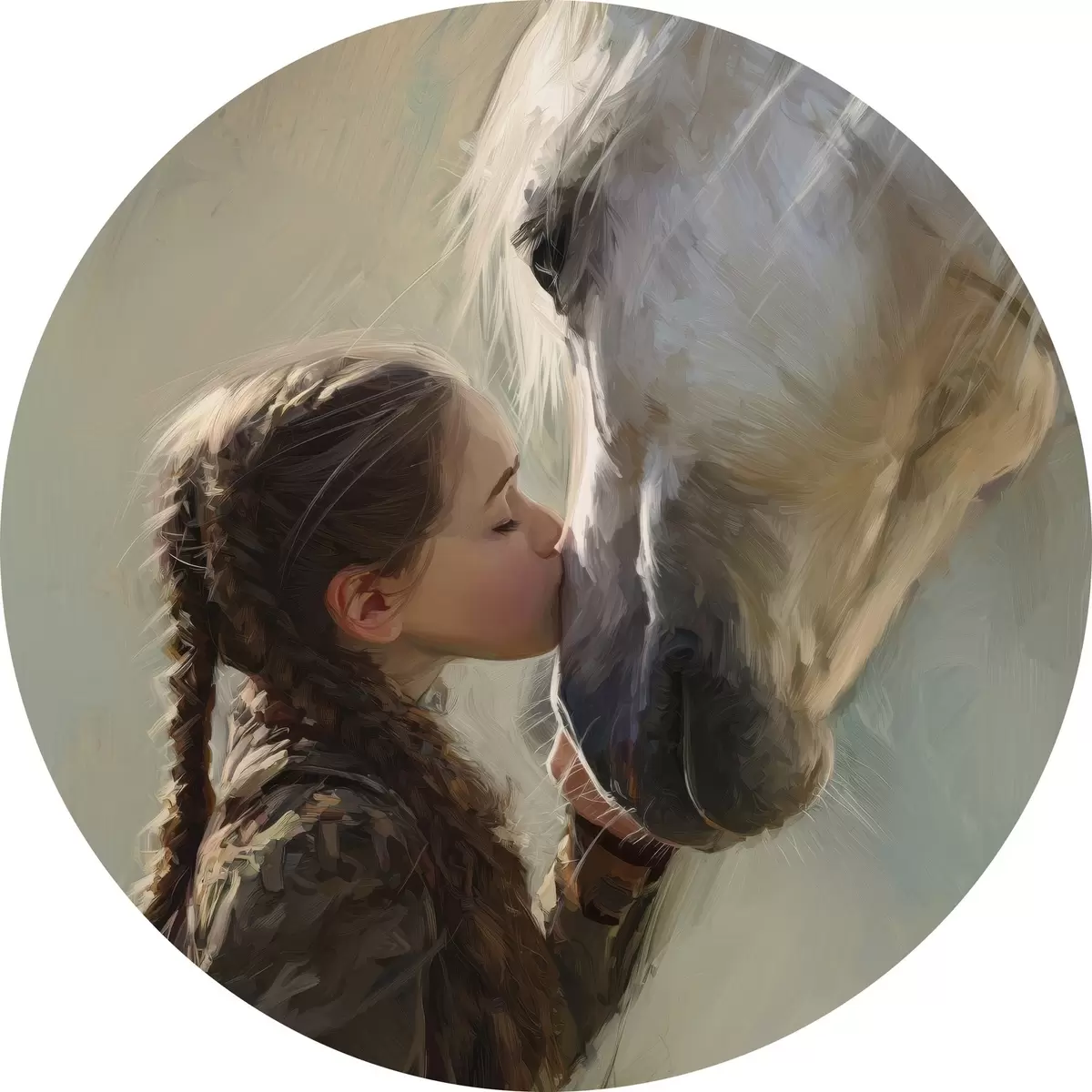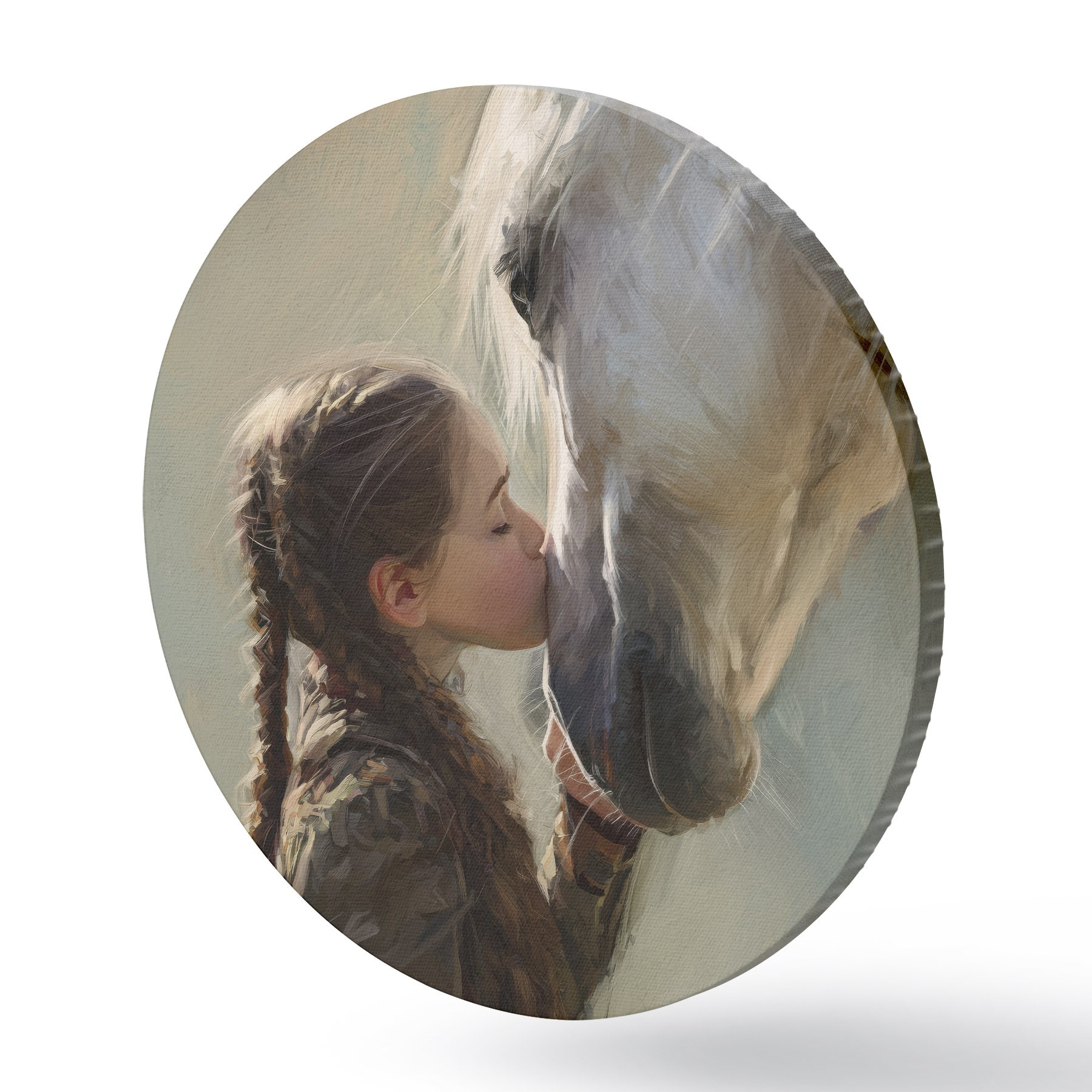Runde Gemälde mädchen küsst ein Pferd r45731