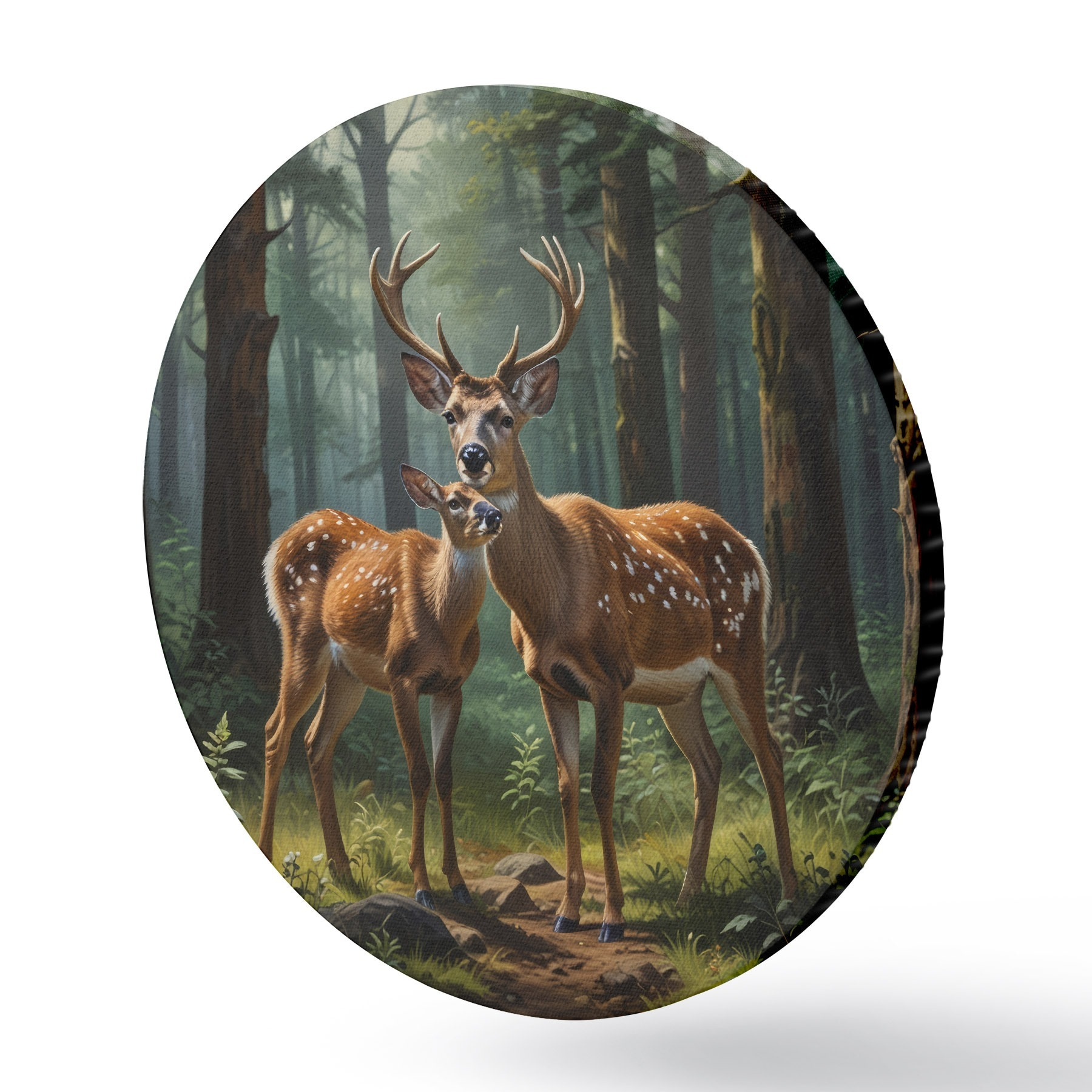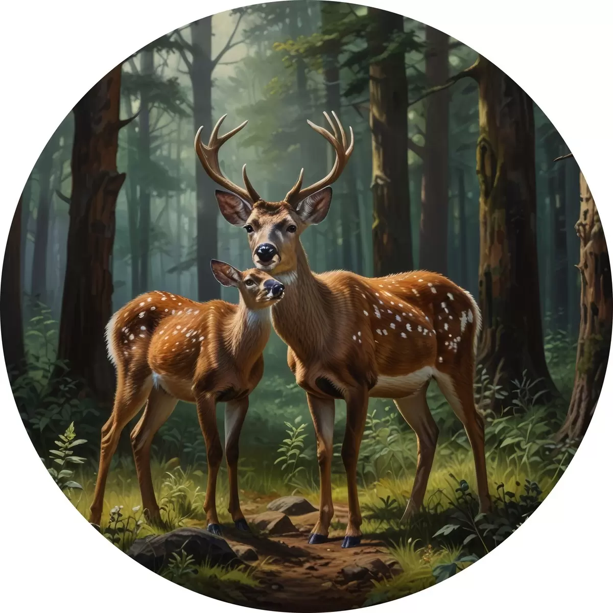 Runde Gemälde hirsch mit Kitz im Wald r45732