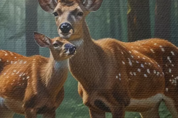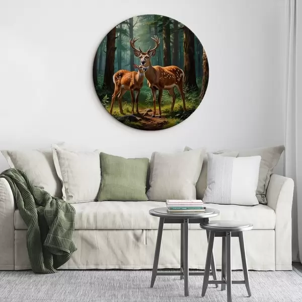 Runde Gemälde hirsch mit Kitz im Wald r45732