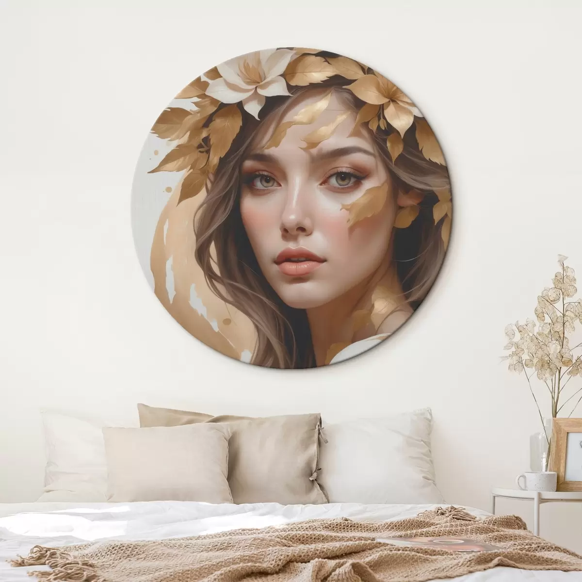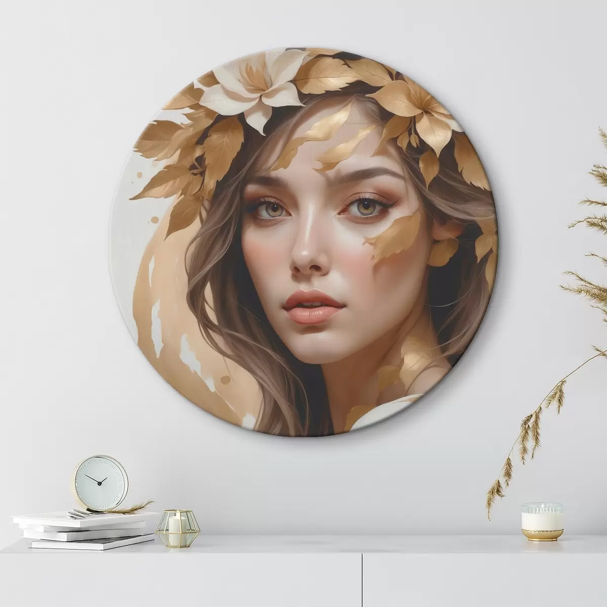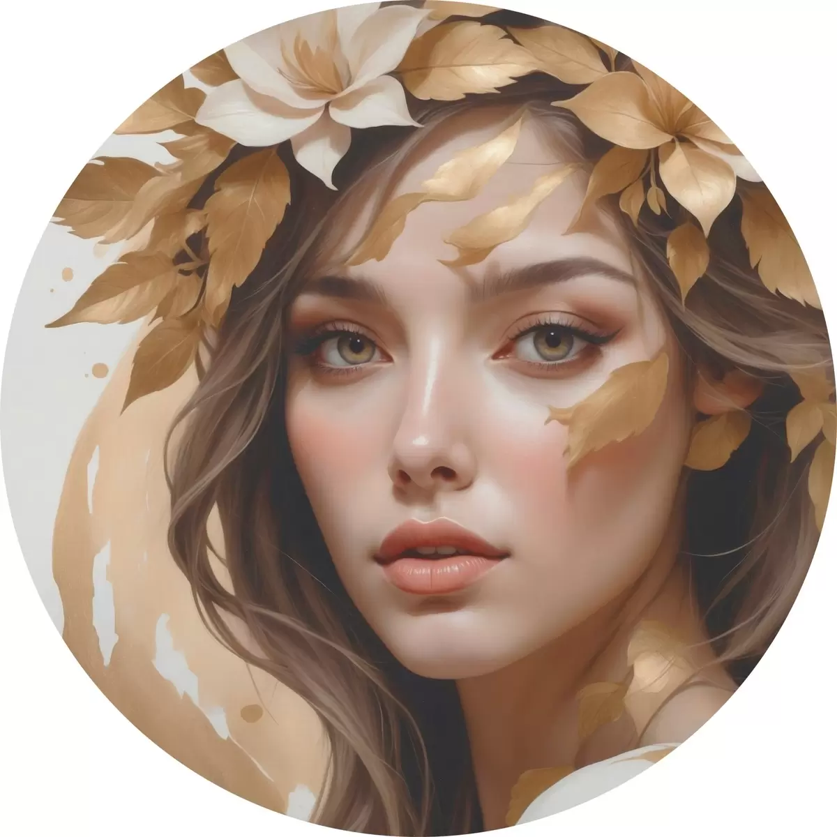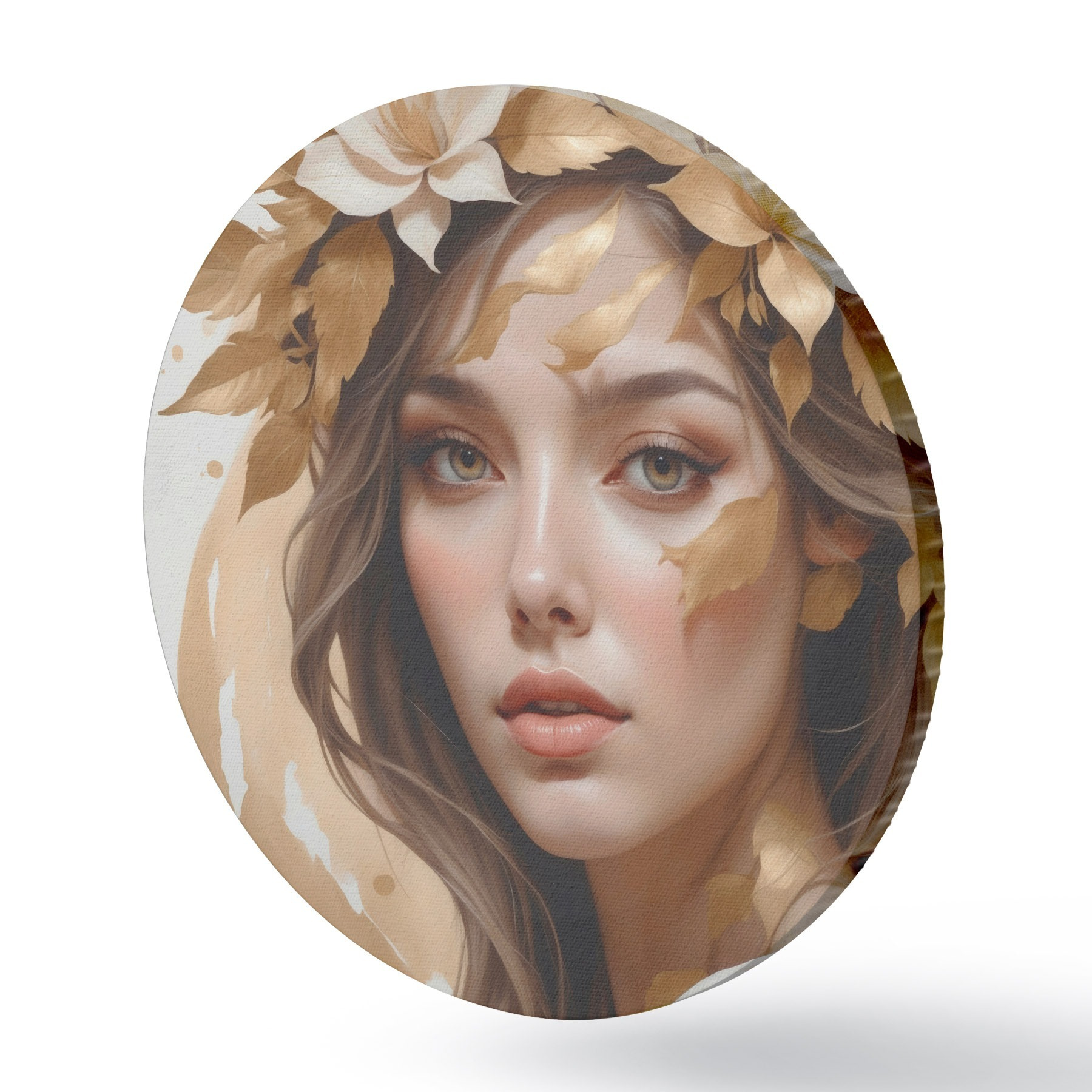 Runde Gemälde Eine Frau mit Blättern im Haar r45748