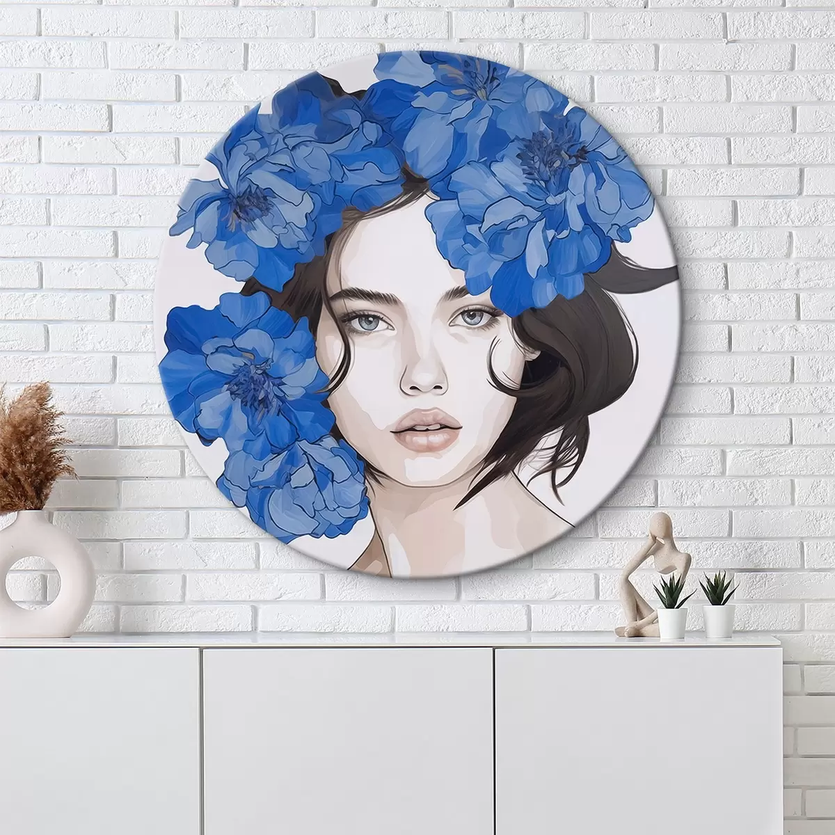 Runde Gemälde Porträt eines Mädchens mit blauen Blumen r45756