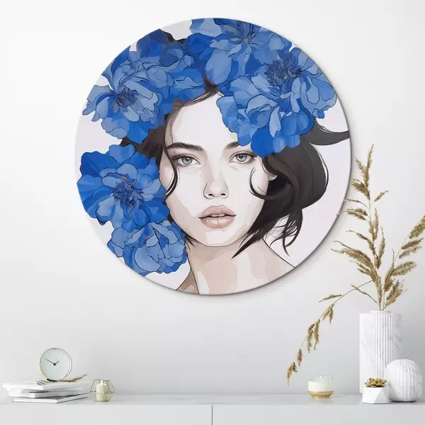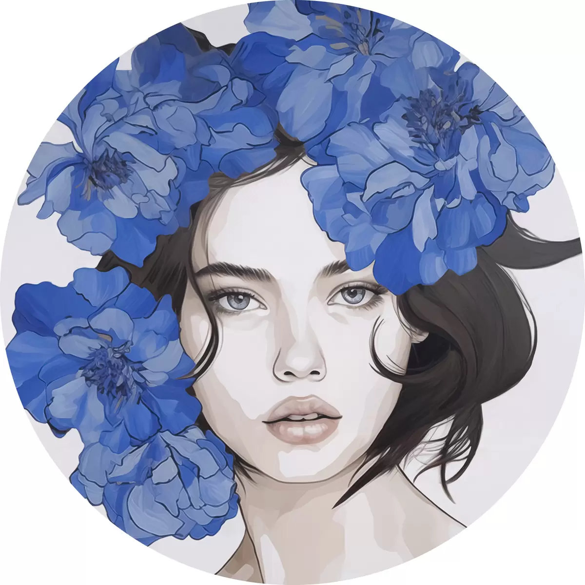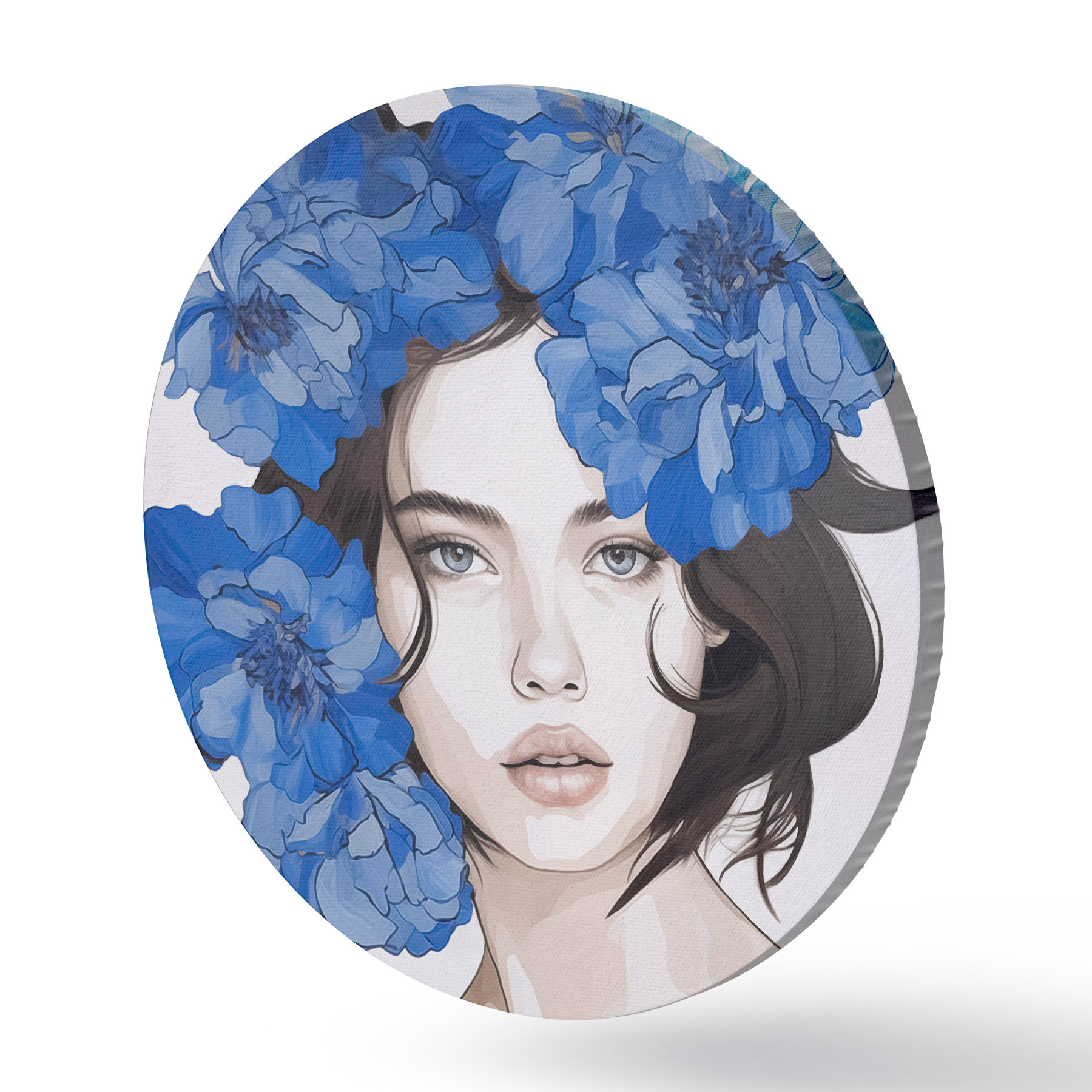 Runde Gemälde Porträt eines Mädchens mit blauen Blumen r45756